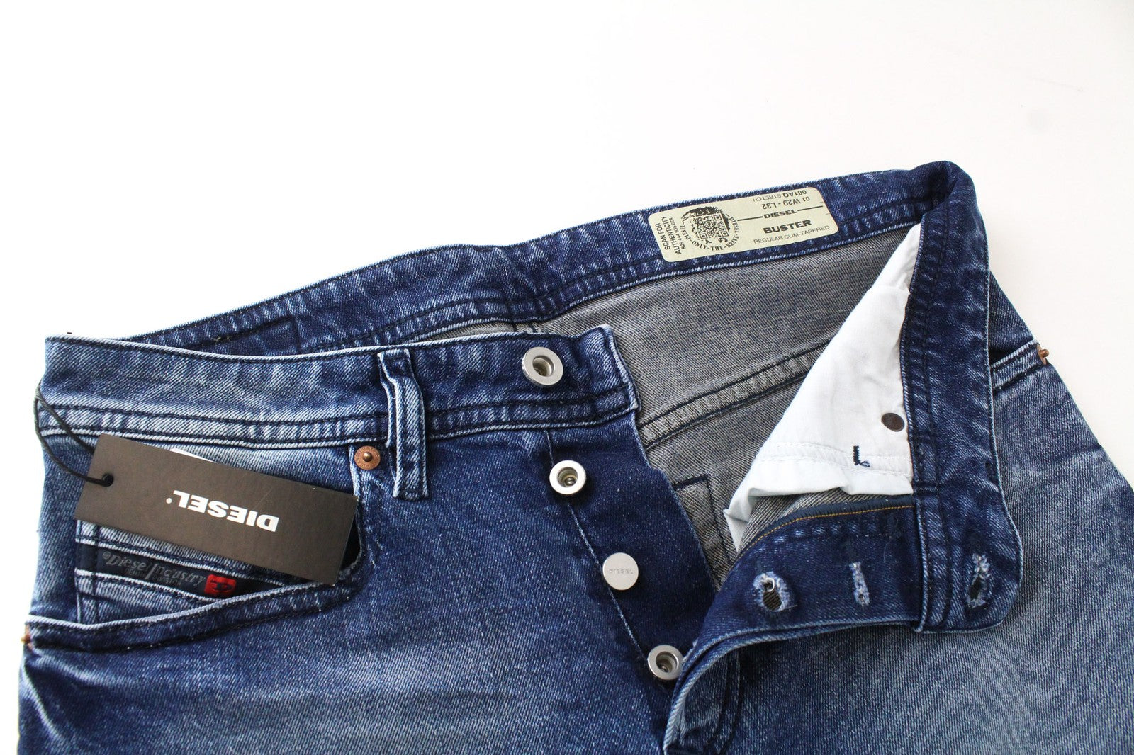DIESEL Buster 081AQ Men's Denim Pants W29/L32 Distressed Blue Slim Elastic Taper