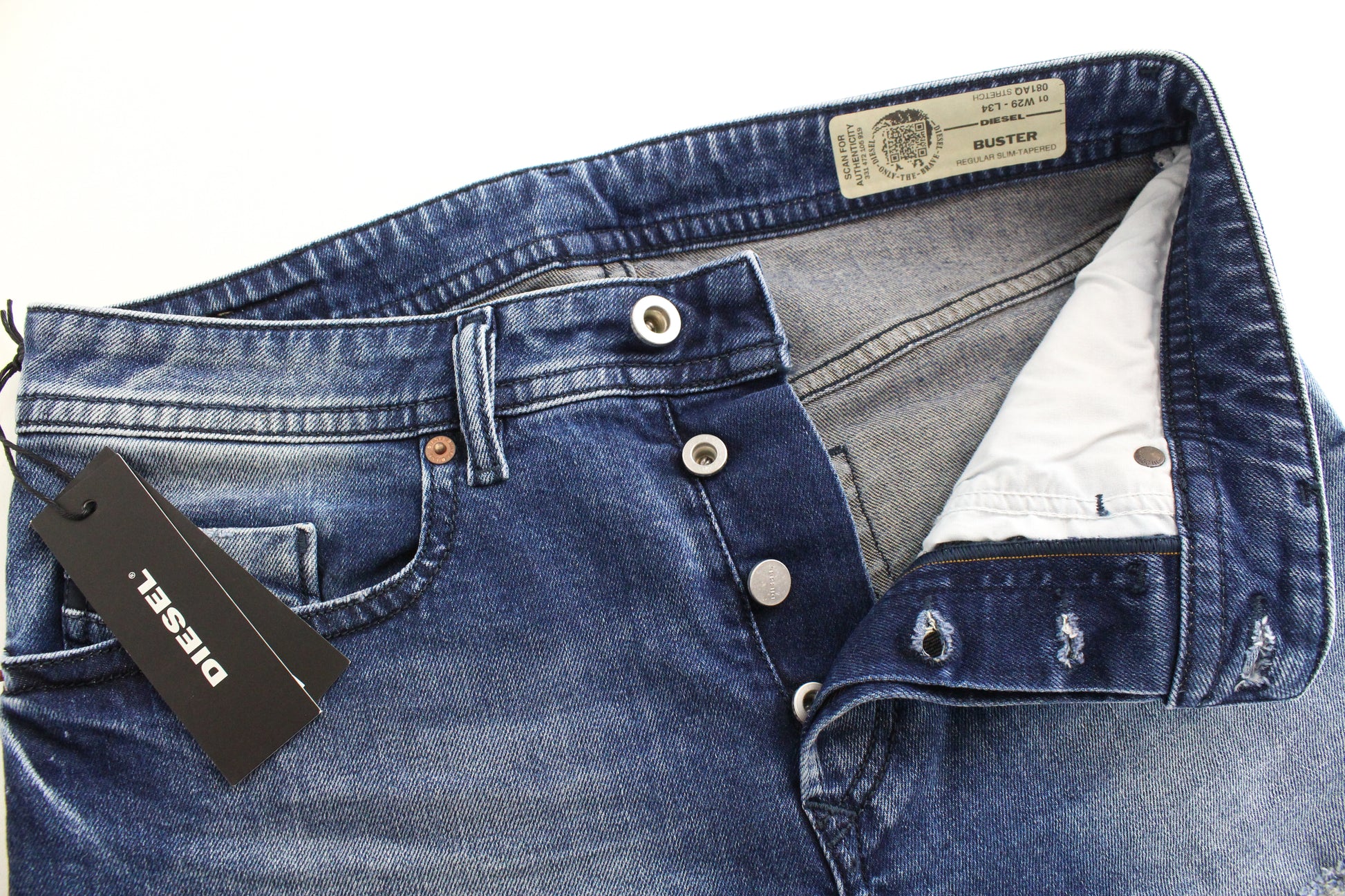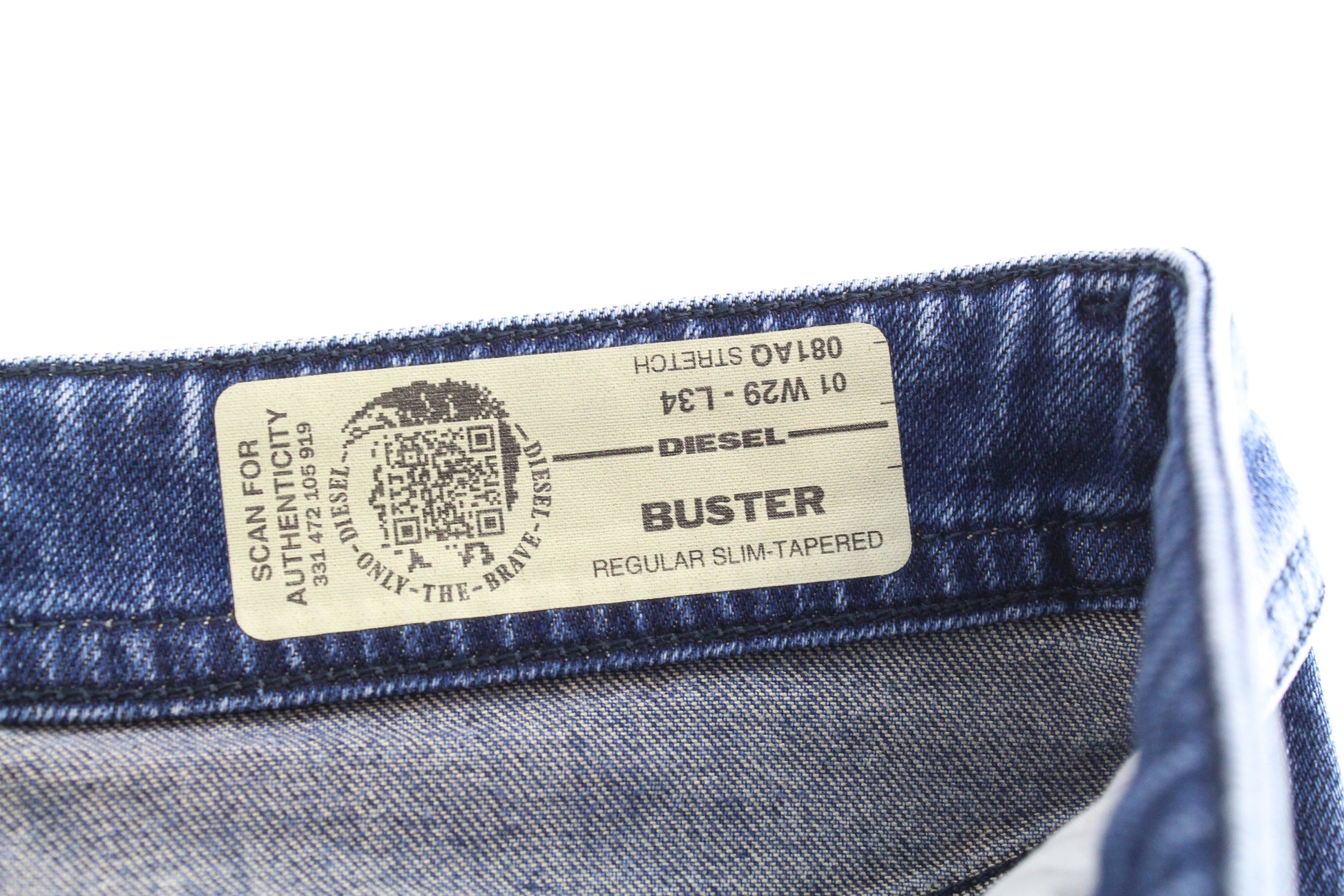 DIESEL Buster 081AQ Men's Jeans W29 L34 Blue Ripped Taper Slim Fit Stretch