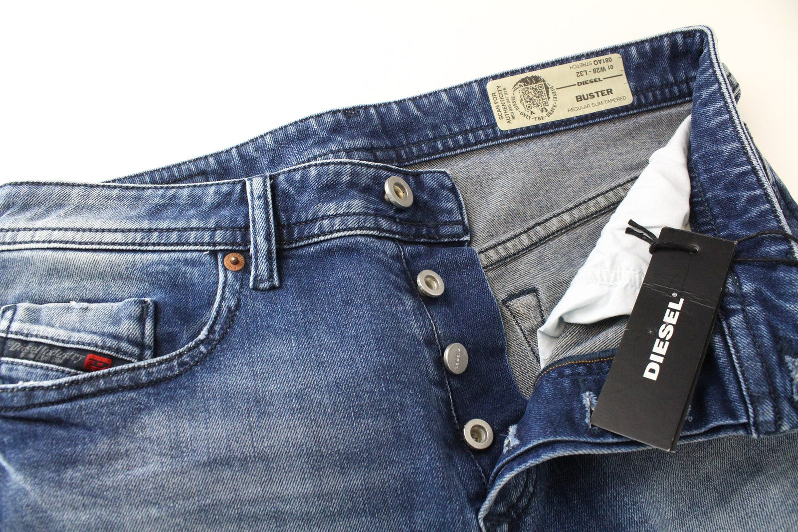 DIESEL Buster 081AQ Men's W28/L32 Blue Slim Taper Ripped Cotton Stretch Jeans