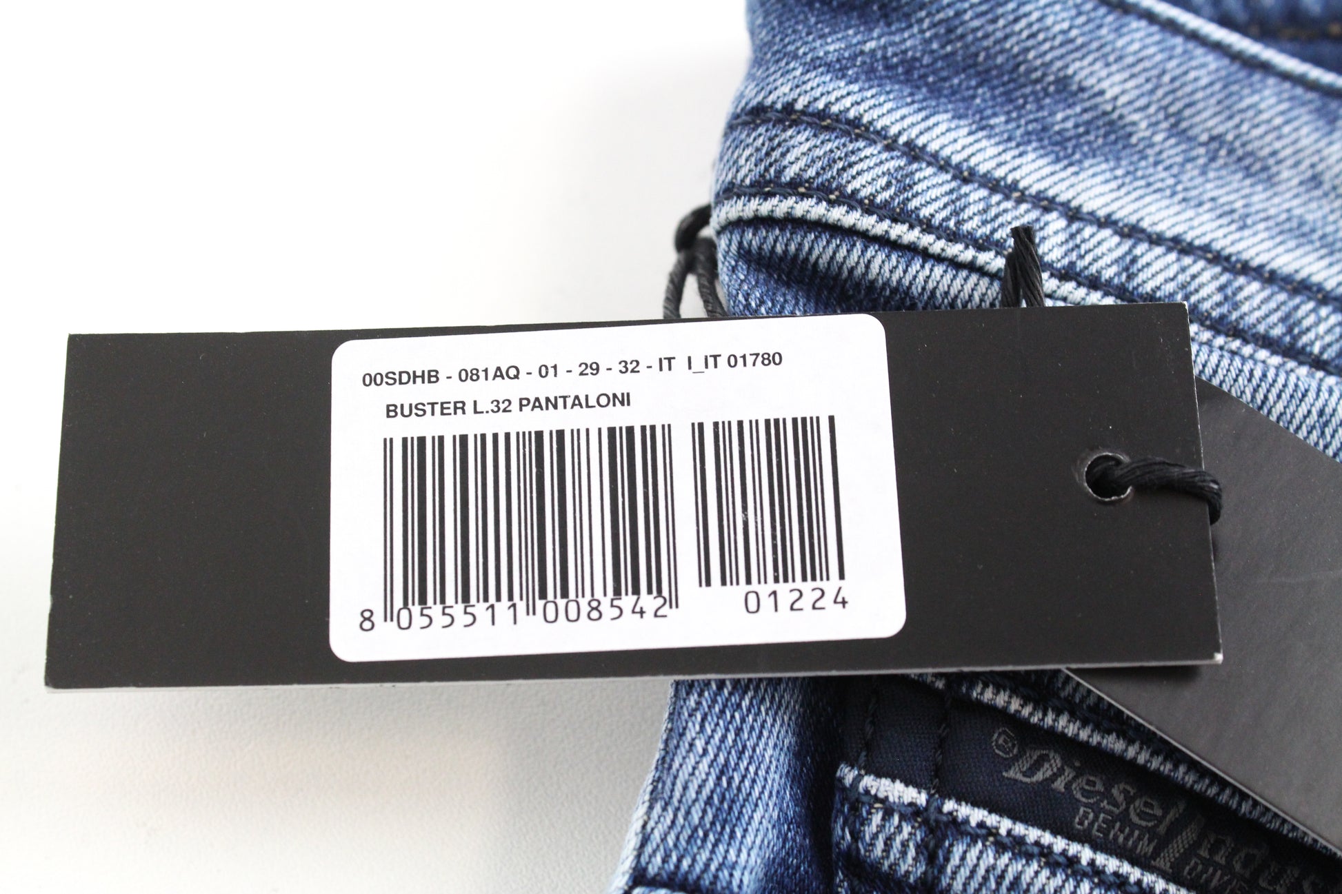 DIESEL Buster 081AQ Men's W29 L32 Jeans Slim Fit Blue Cotton Ripped Stretch