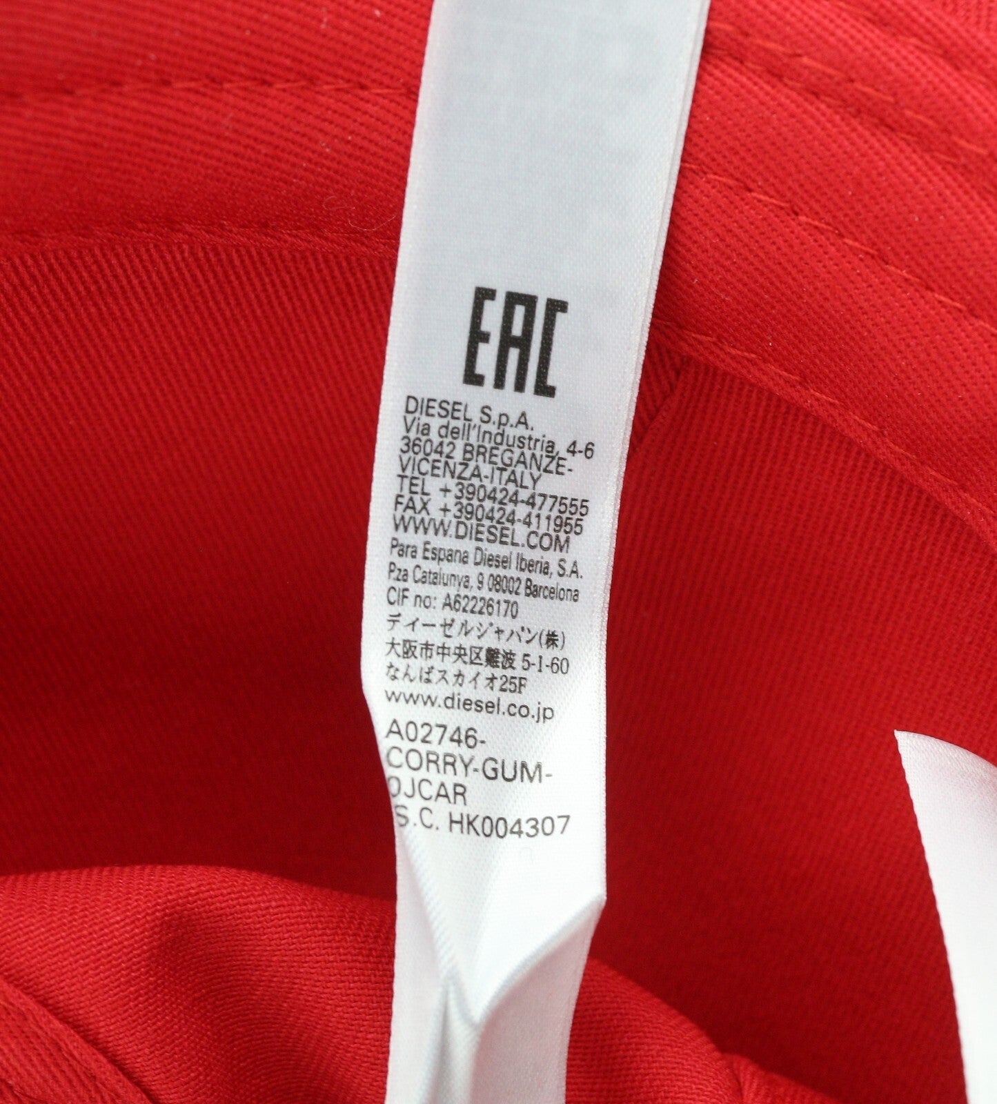 DIESEL Corry-Gum Men Cap OS Red Baseball Cotton Patch Front Logo Casual Unisex