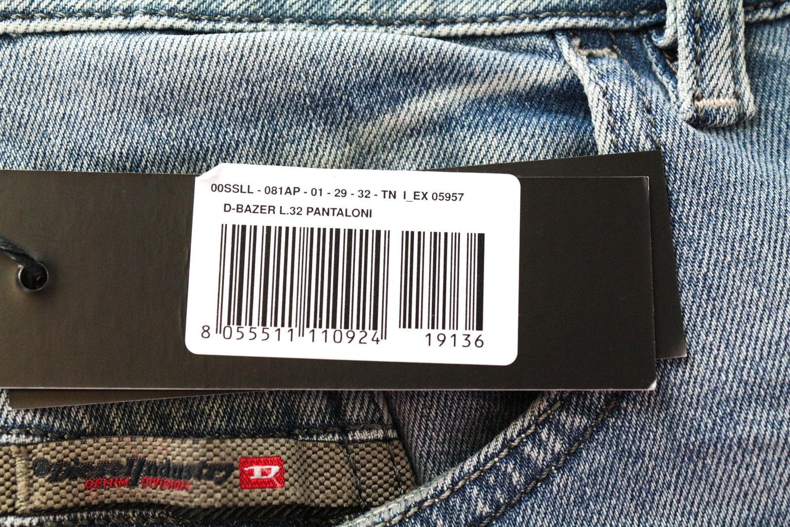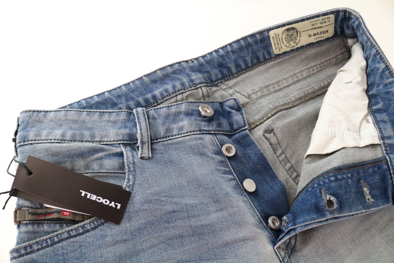 DIESEL D-Bazer 081AP Men's Jeans W29/L32 Light Blue Cotton Wash Taper Fit