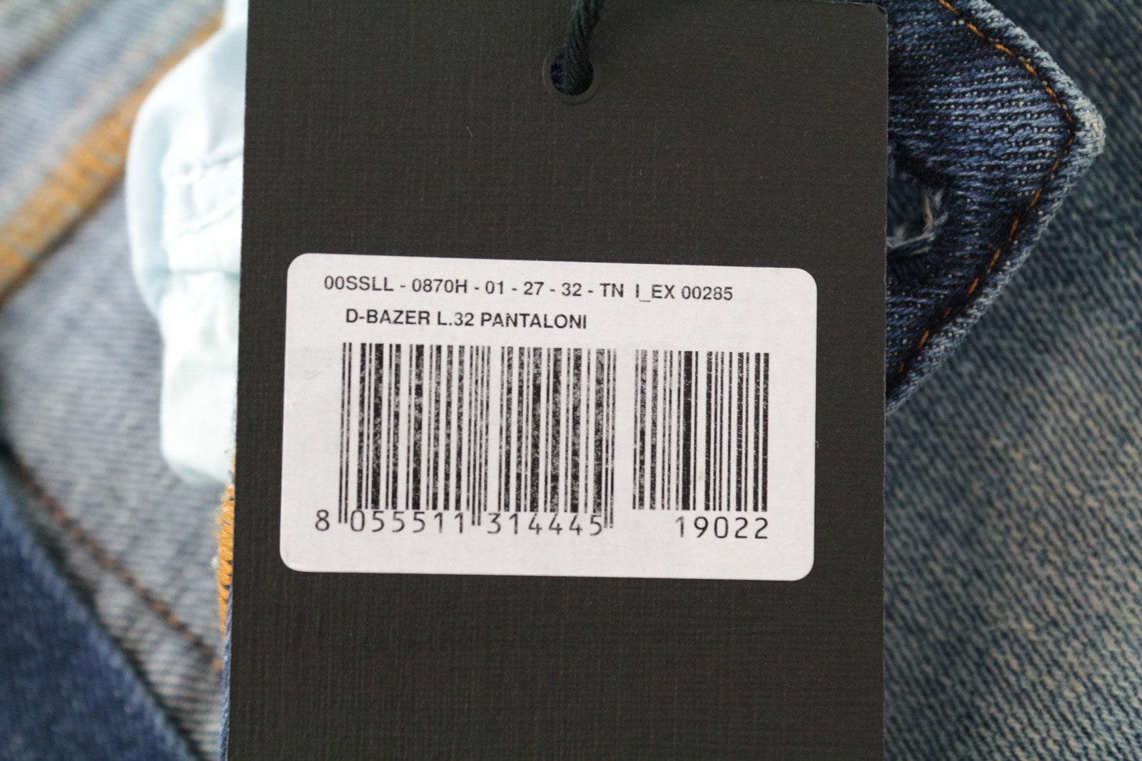 DIESEL D-Bazer 0870H Men's Jeans W27/L32 Washed Blue Tapered Cotton Stretch