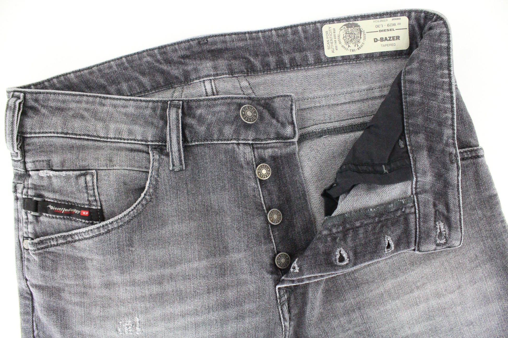 DIESEL D-Bazer 0890F Mens Jeans W29/L30 Tapered Cotton Stretch Grey Ripped
