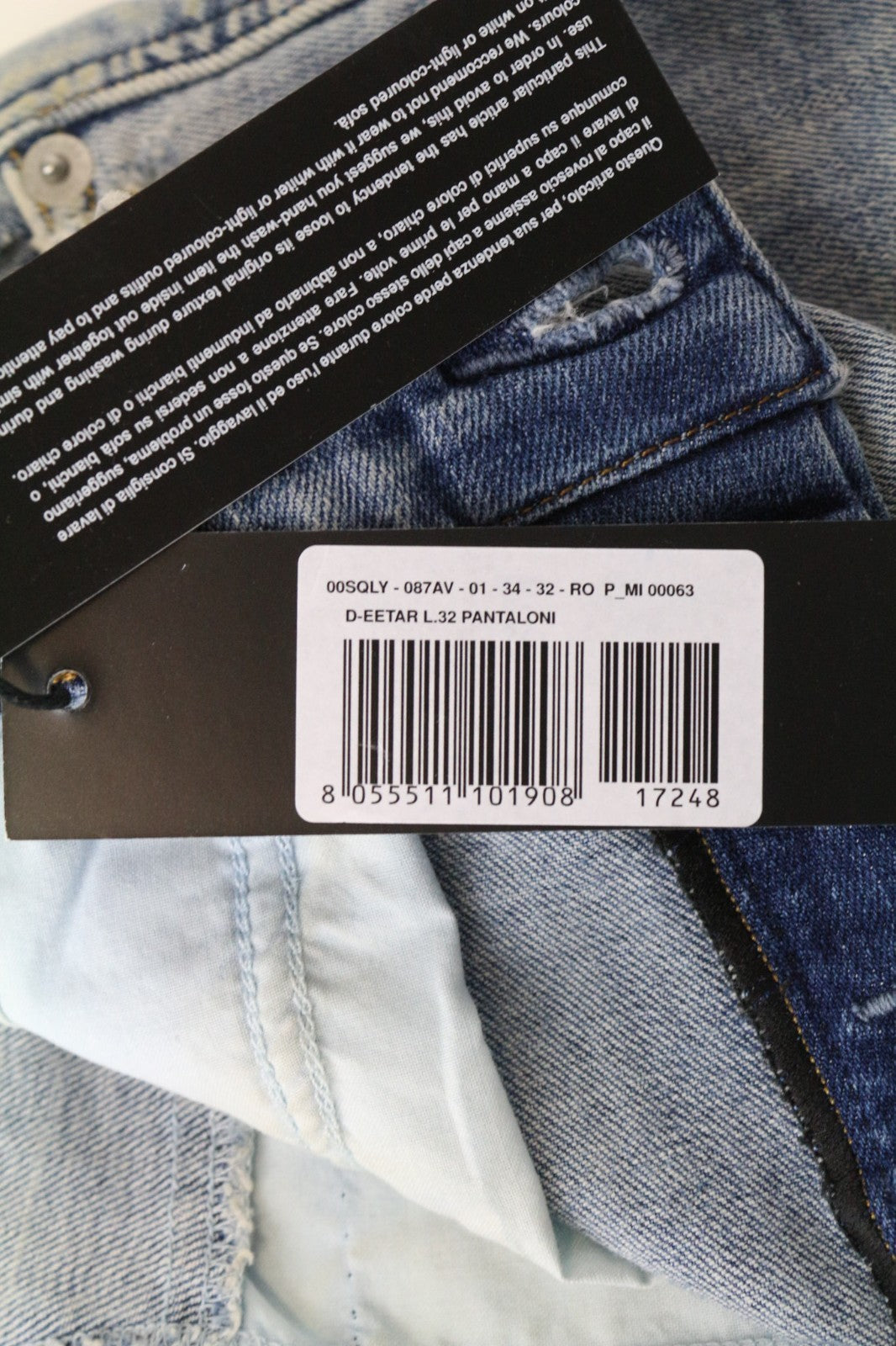 DIESEL D-Eetar 087AV Men's Jeans W34/L32 Ripped Blue Tapered Cotton Stretch