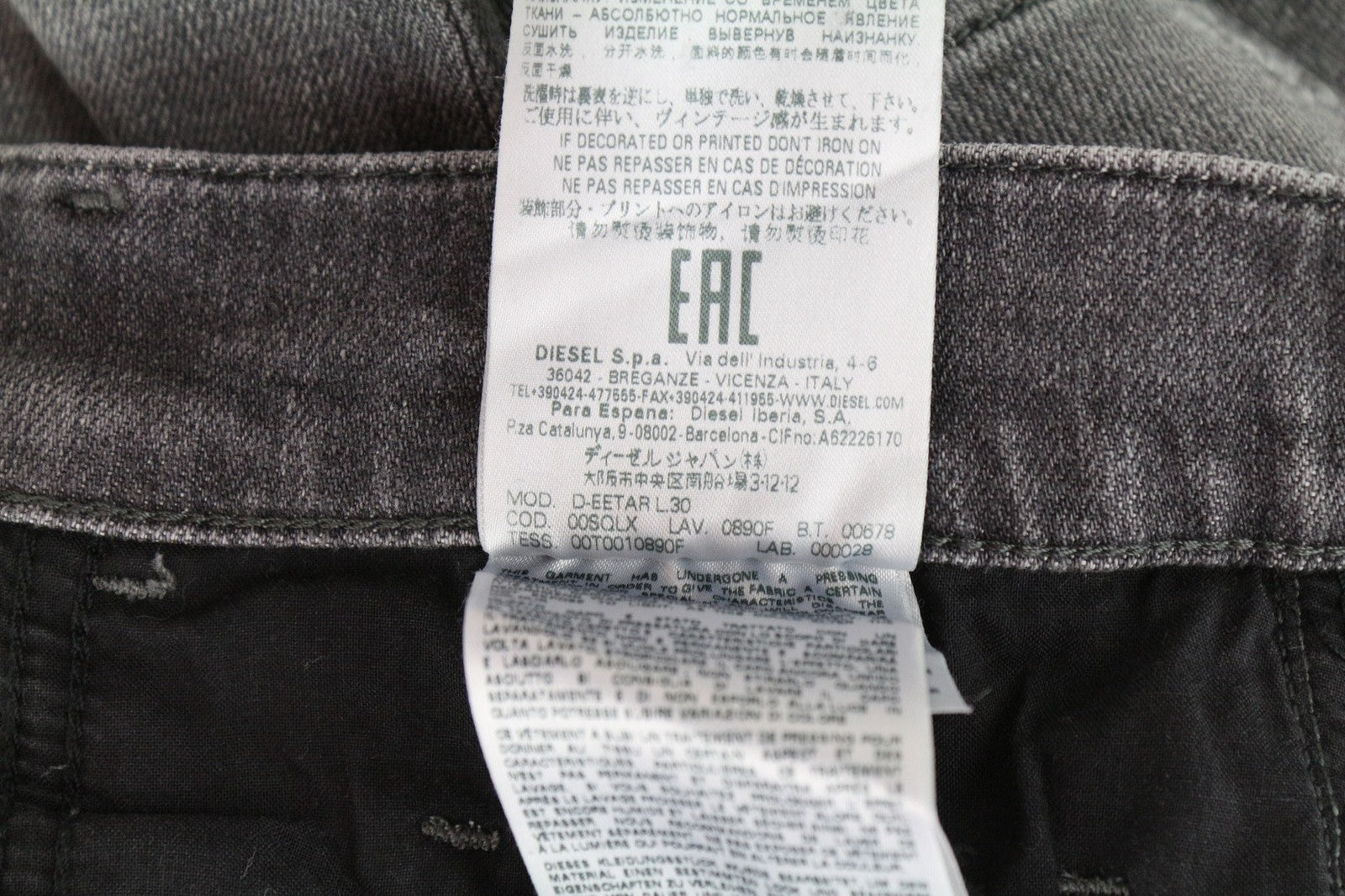 DIESEL D-Eetar 0890F Men's Jeans W29/L30 Tapered Grey Ripped Stretch Cotton