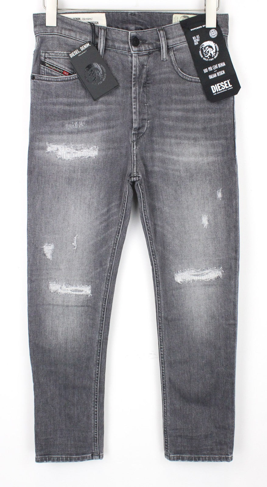 DIESEL D-Eetar 0890F Men's W28/L30 Jeans Ripped Grey Cotton Stretch Tapered Fit