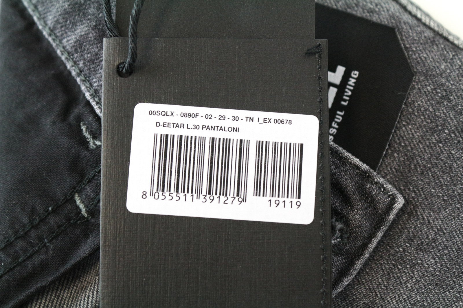 DIESEL D-Eetar 0890F W29/L30 Washed Ripped Grey Taper Jeans Stretch Cotton Men's