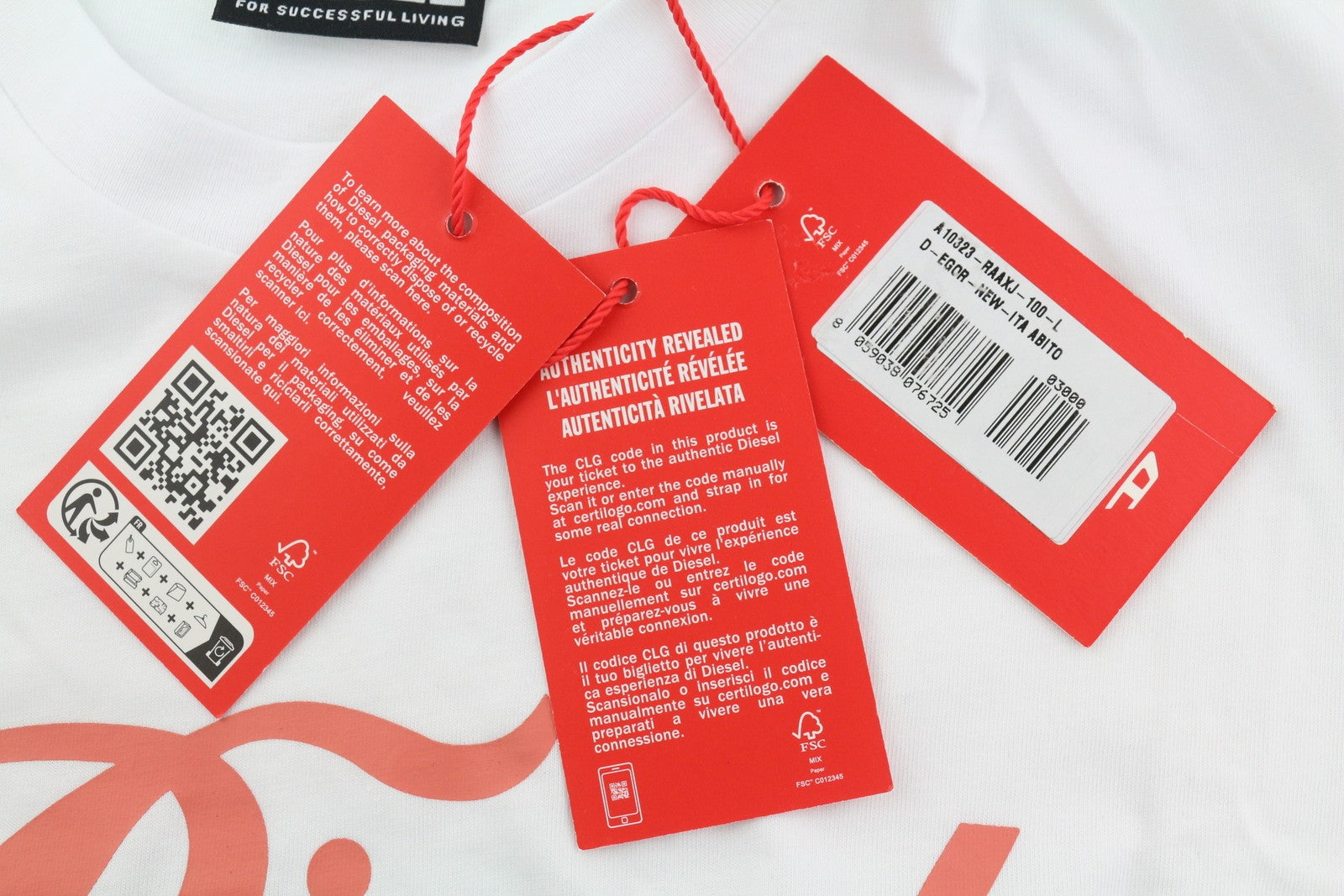 DIESEL D-Egor-New-Ita Women Dress L White Short Sleeve Tricot Casual Logo