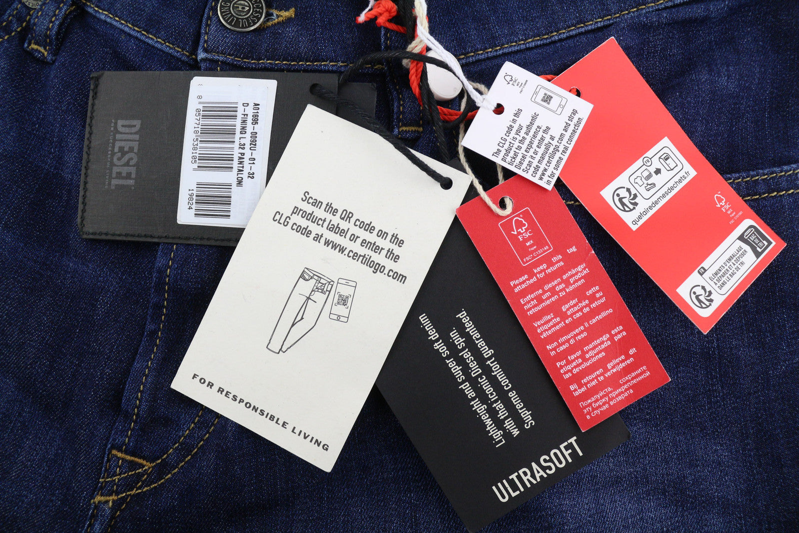 DIESEL D-Fining 009ZU Men Jeans W32/L32 Tapered Fit Stretch Washed Denim Blue