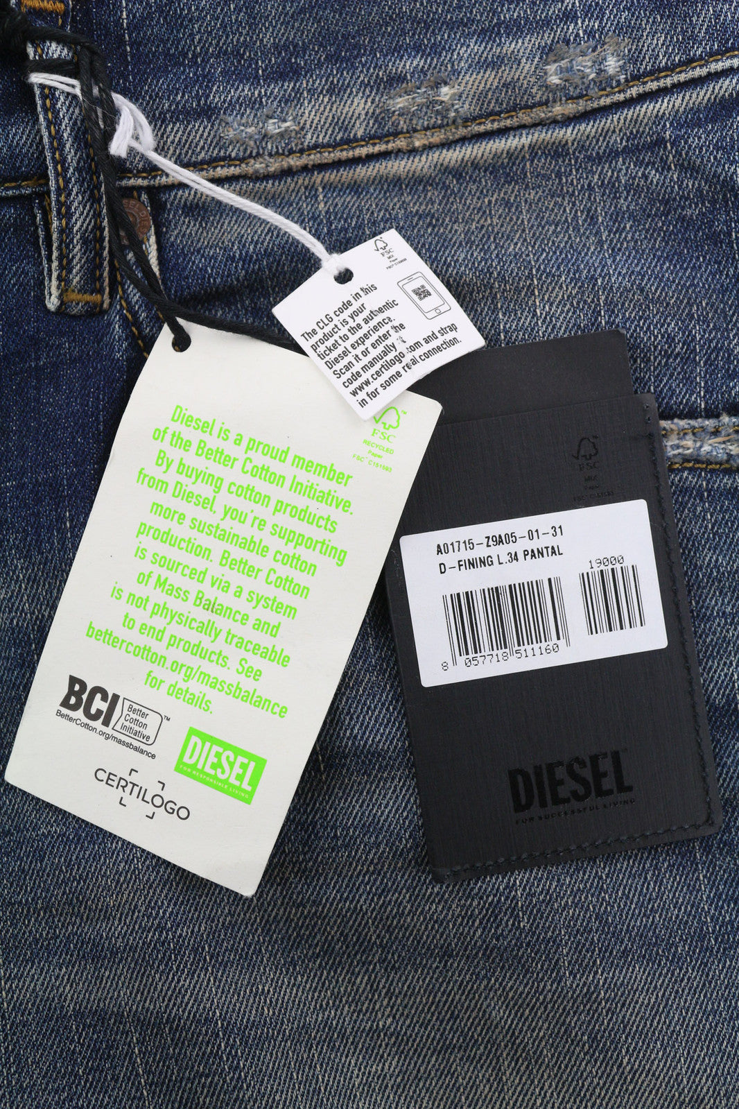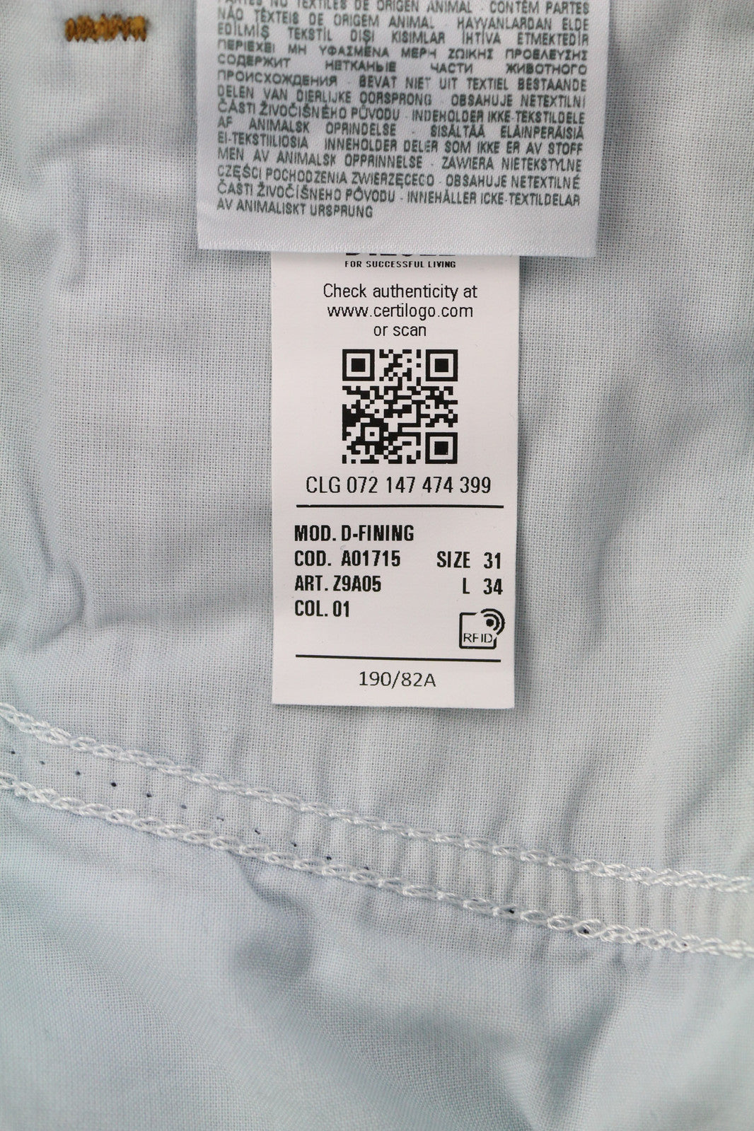 DIESEL D-Fining Z9A05 Men Jeans W31/L34 Tapered Fit Stretch Washed Blue RRP€225