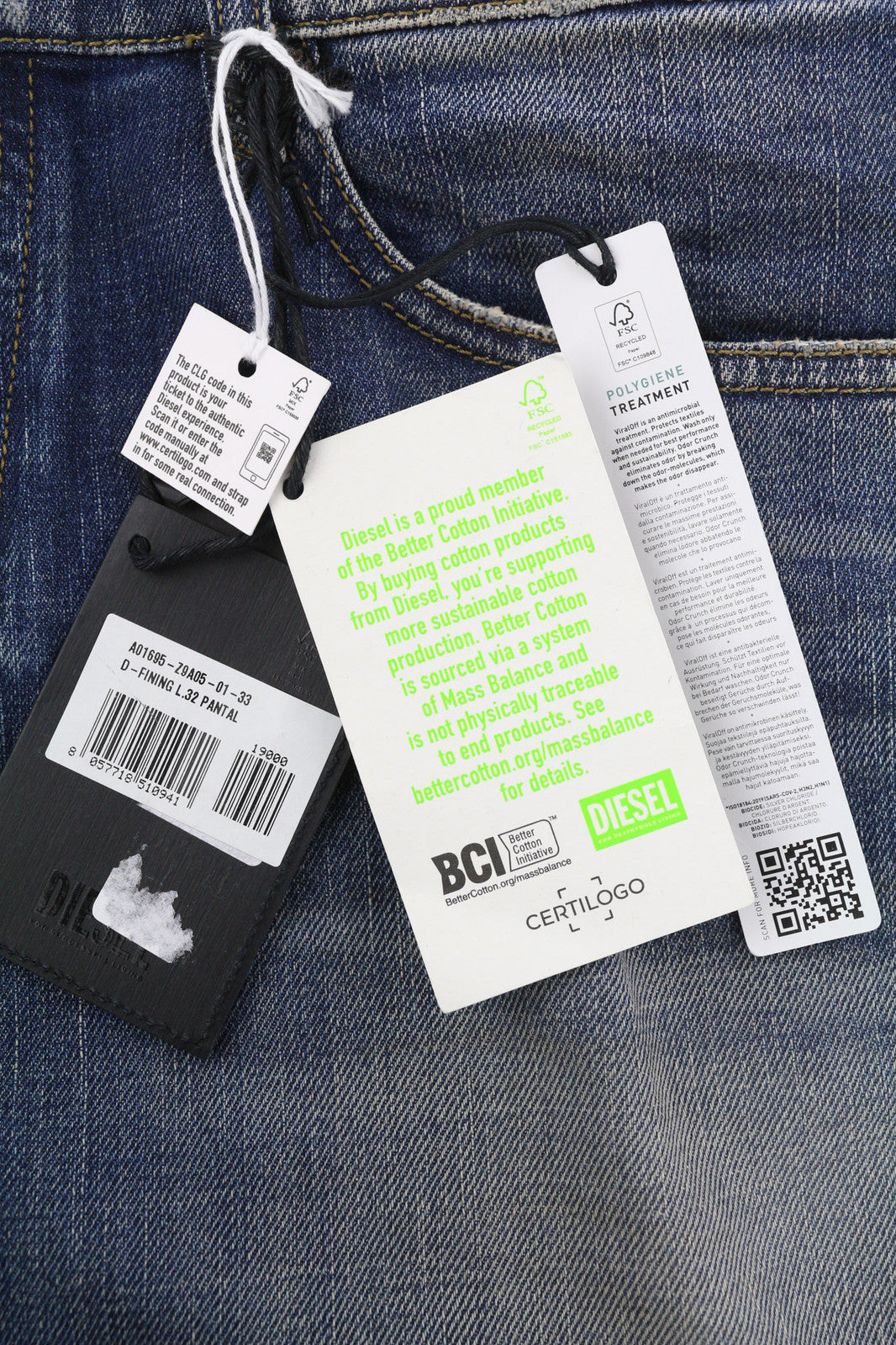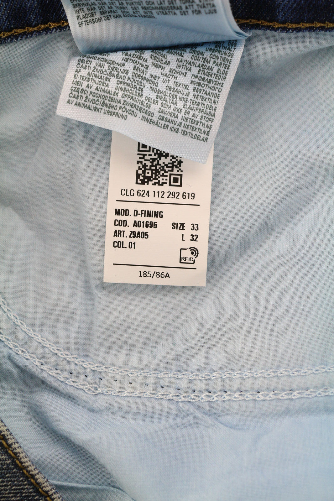 DIESEL D-Fining Z9A05 Men Jeans W33/L32 Tapered Fit Stretch Washed Blue RRP€225