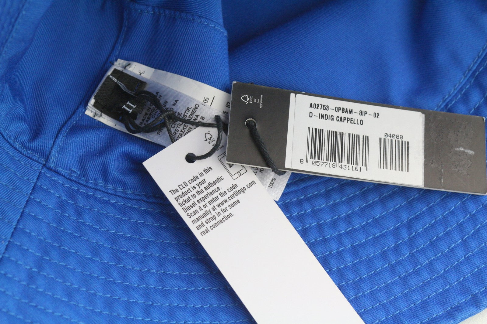 DIESEL D-Indig Men Hat OS Blue Bucket All Seasons Casual Patch Mid RRP€100