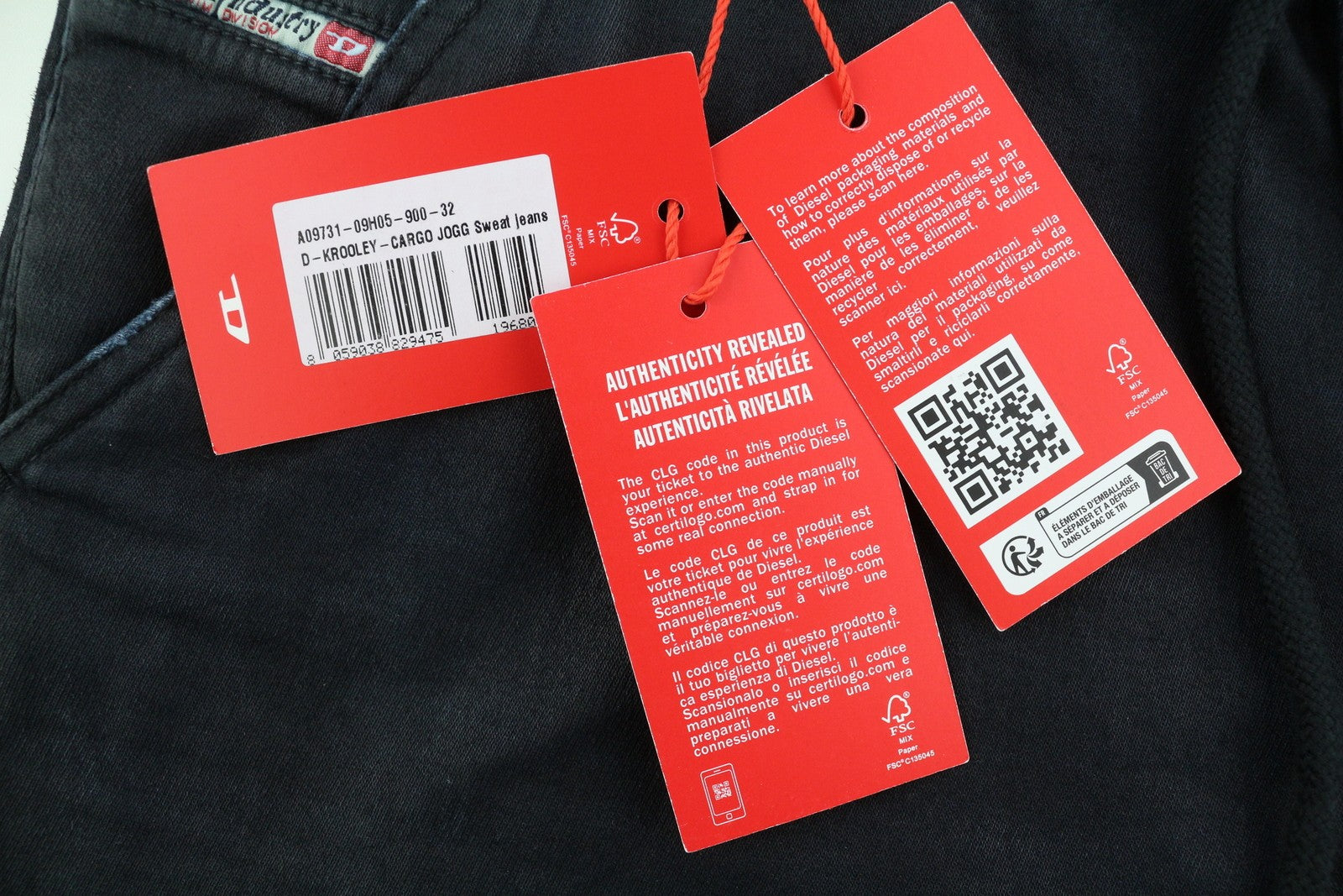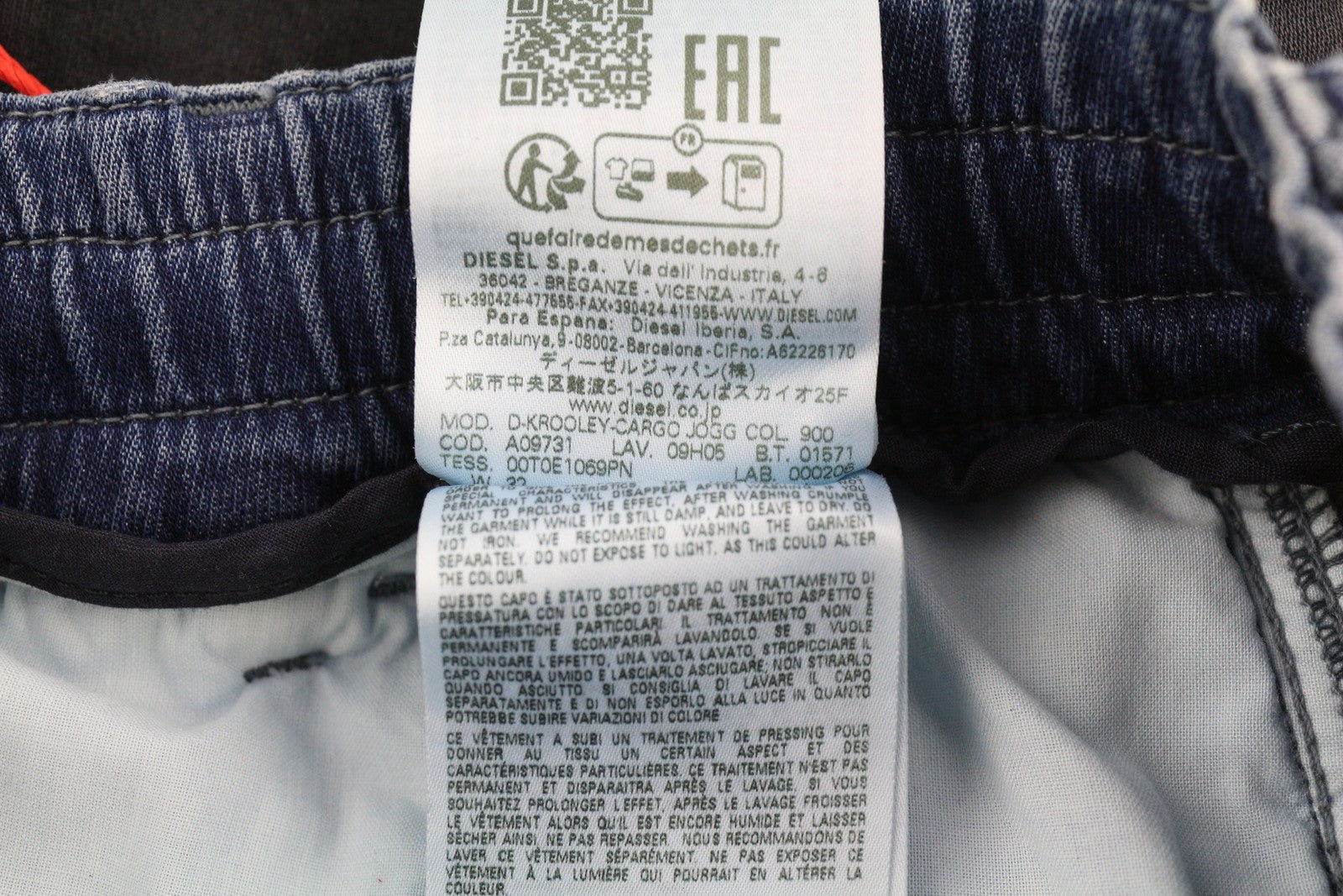 DIESEL D-Krooley-Cargo Jogg 09H05 Men Jeans W32 Elastic Waist RRP€350 Dark Blue