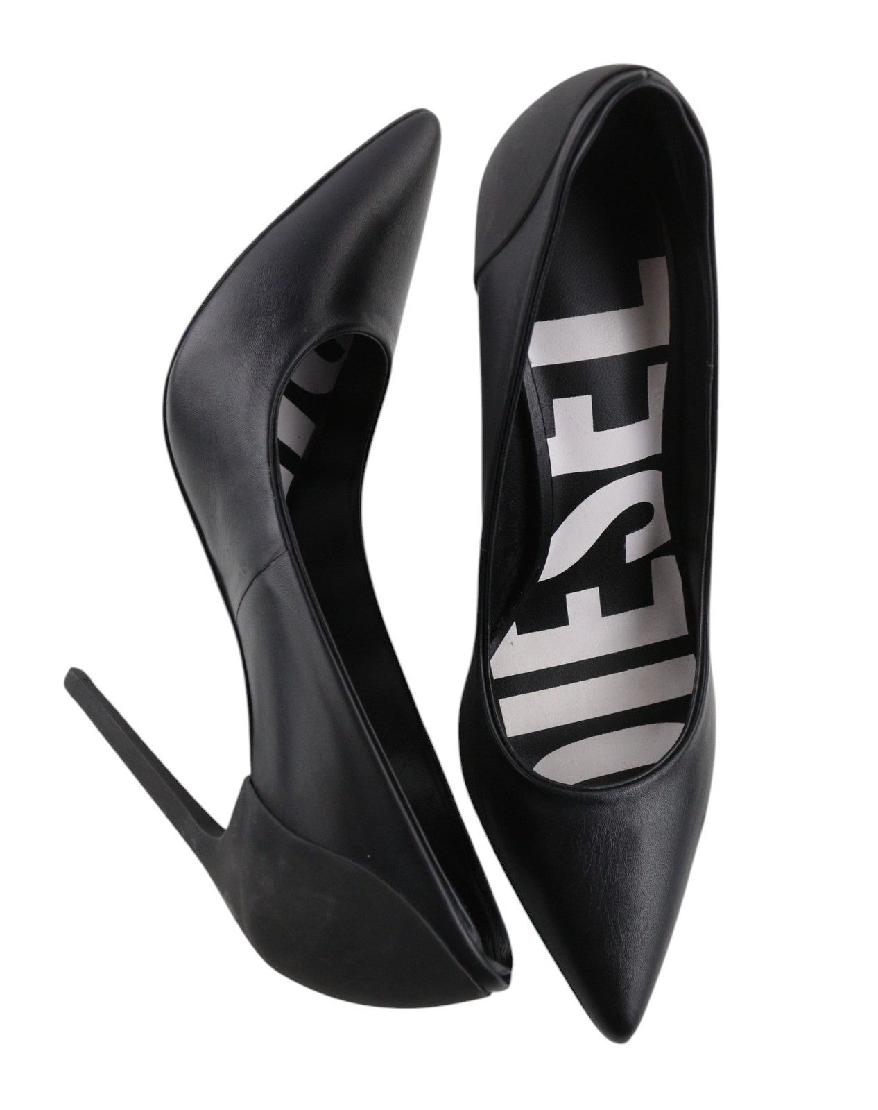 DIESEL D-Slanty Women's EU38 Black Leather Pointed Stiletto Heels