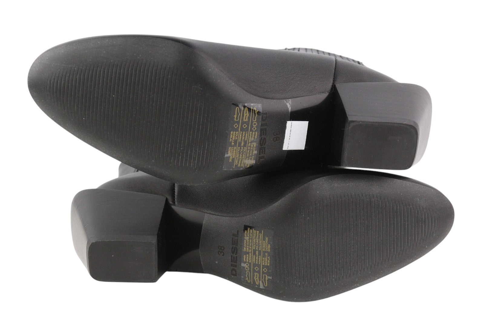 DIESEL D-Texanne CH Women Boots EU38 Black Leather Almond Ankle Top RRP290