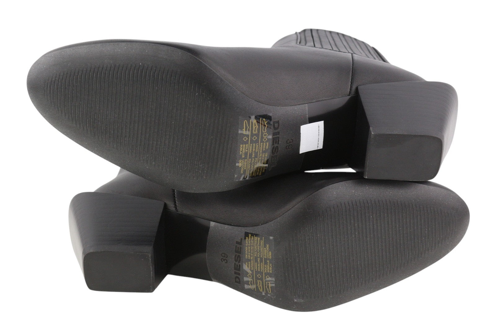 DIESEL D-Texanne CH Women Boots EU39 Black Leather Almond Toe RRP€290 Cuban Heel