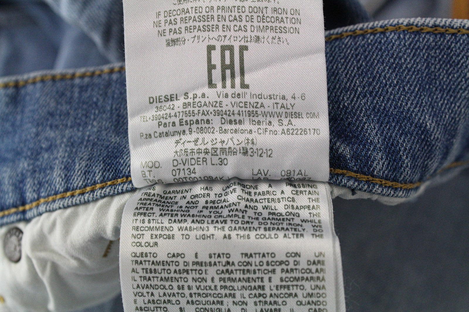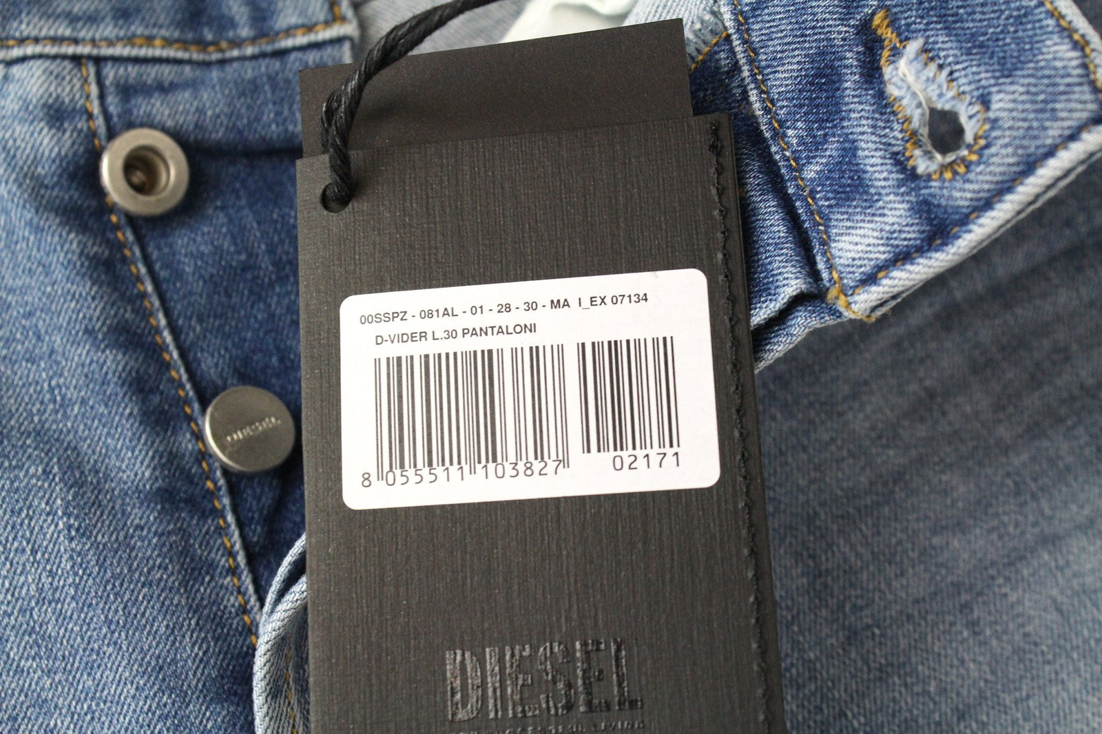 DIESEL D-Vider 081AL Men's W28/L30 Carrot Fit Blue Stretch Cotton Button-Fly