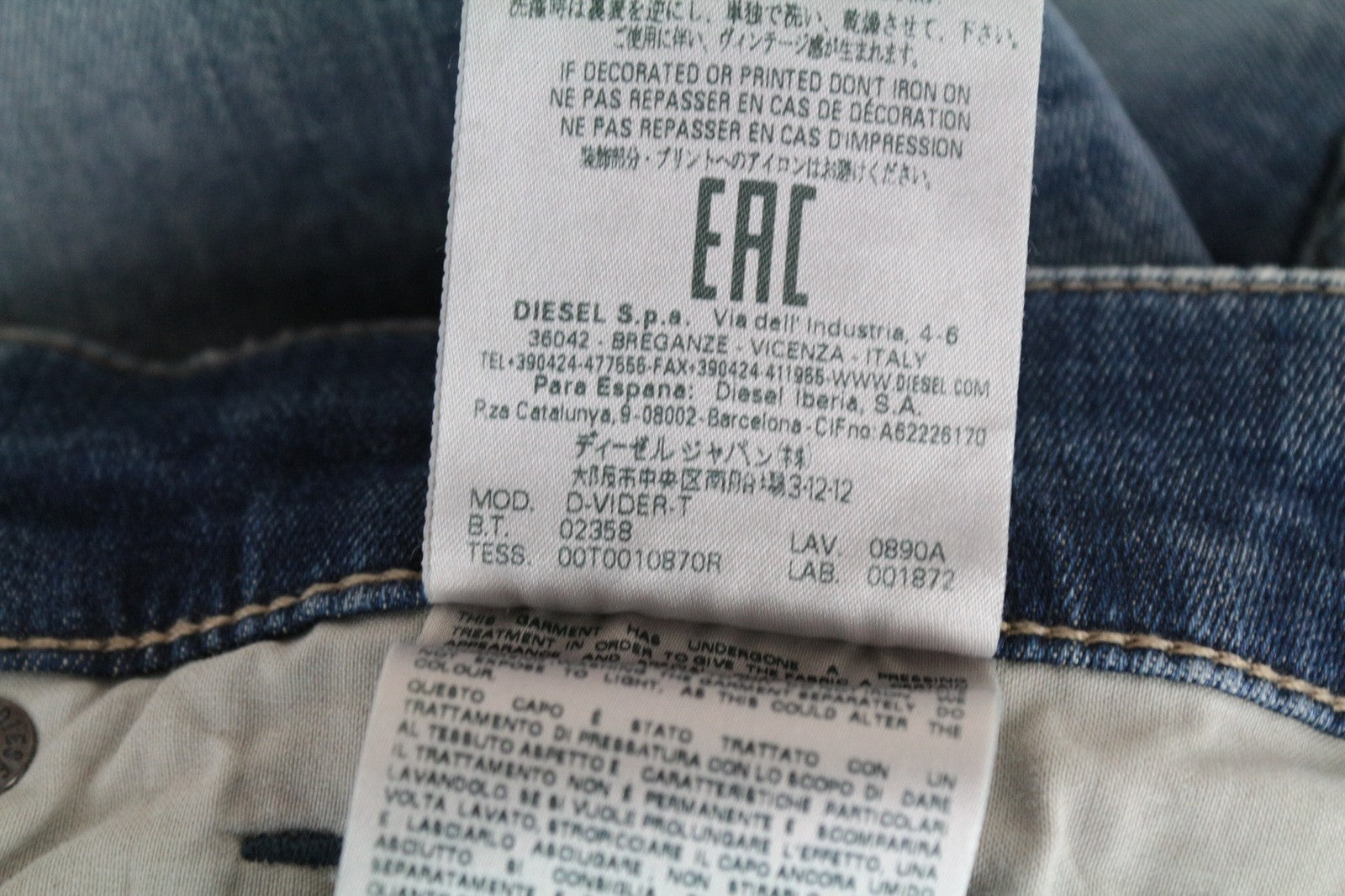 DIESEL D-Vider-T 0890A Men's Jeans W32 Carrot Stretch Blue Ripped