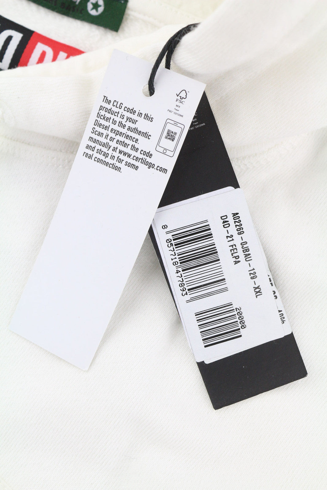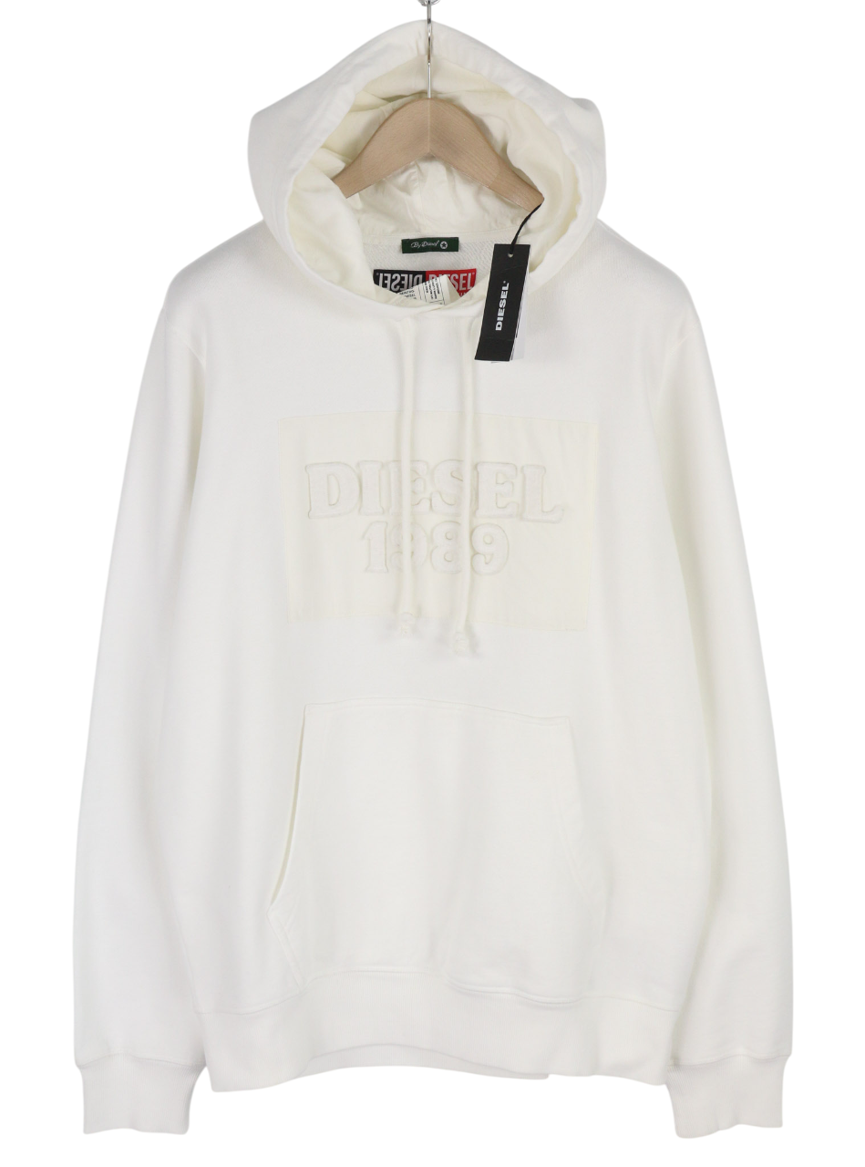 DIESEL D4D-21 Men Hoodie 2XL White Cotton Pullover Kangaroo Pocket Hood RRP€175