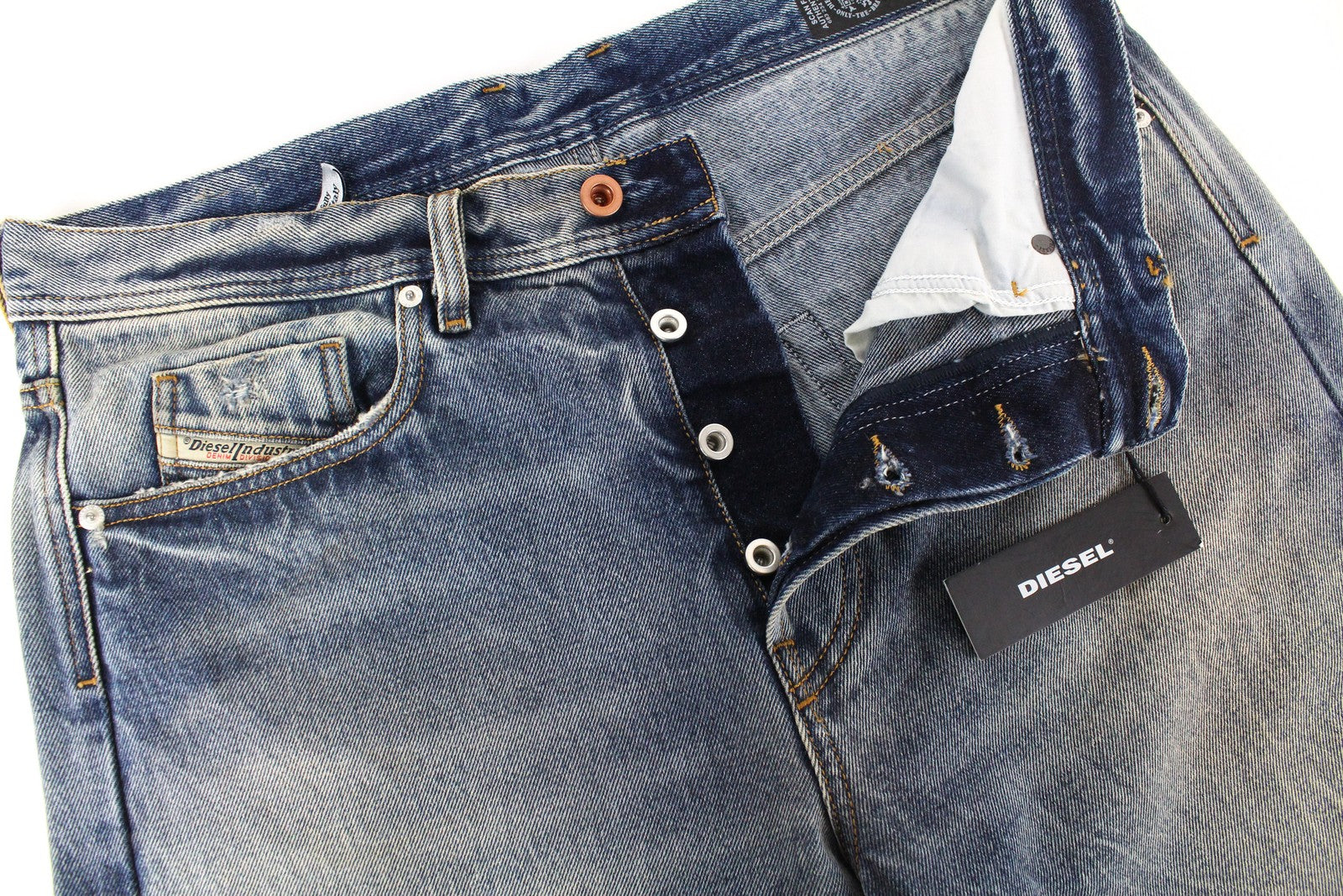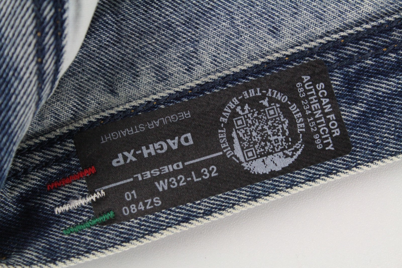 DIESEL Dagh-XP 084ZS Men's Jeans W32/L32 Straight Fit Washed Blue Ripped Cotton