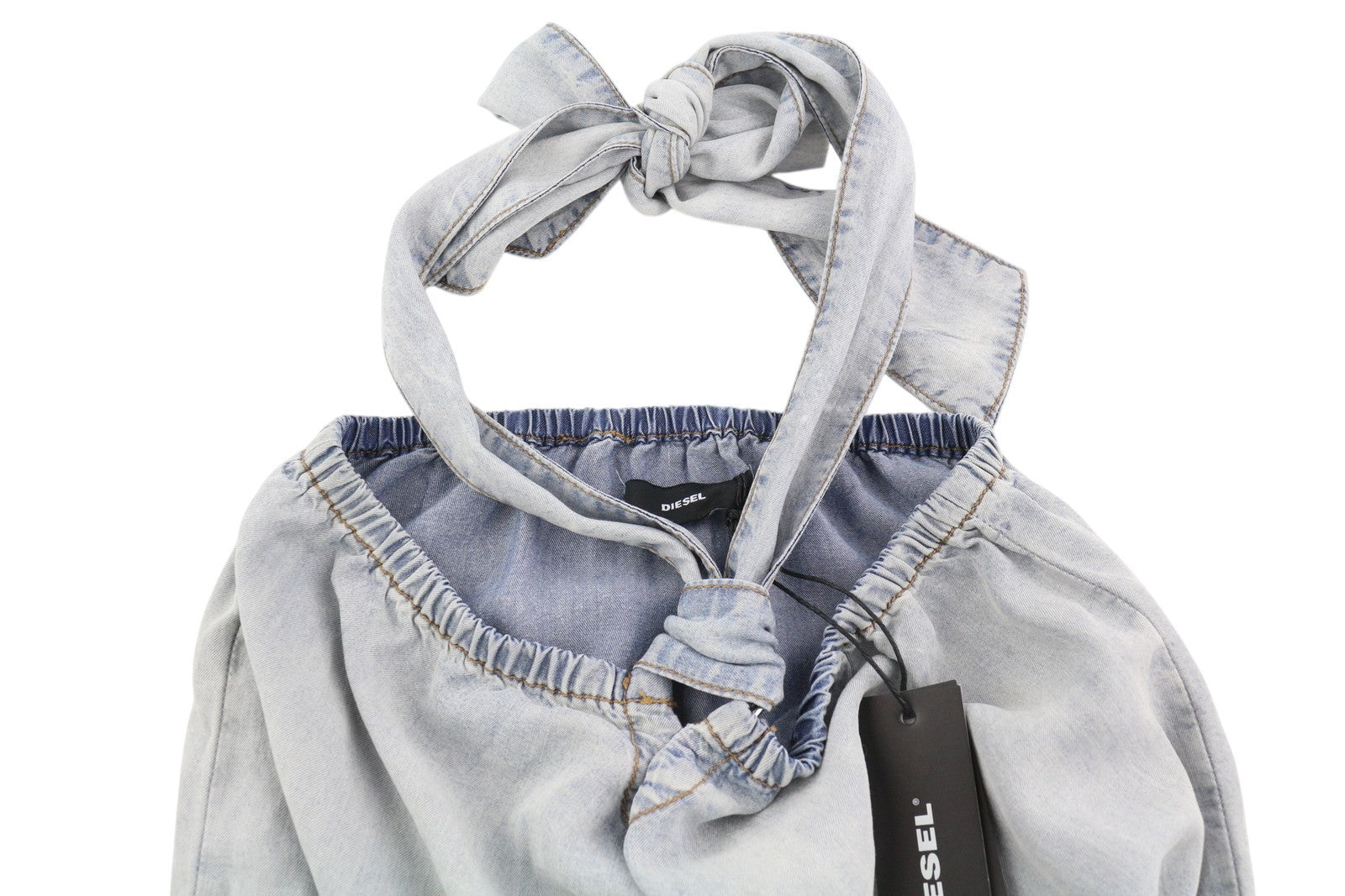 DIESEL De-Shanny Women Romper 2XS Washed Blue Denim Look Elastic Waist Pockets
