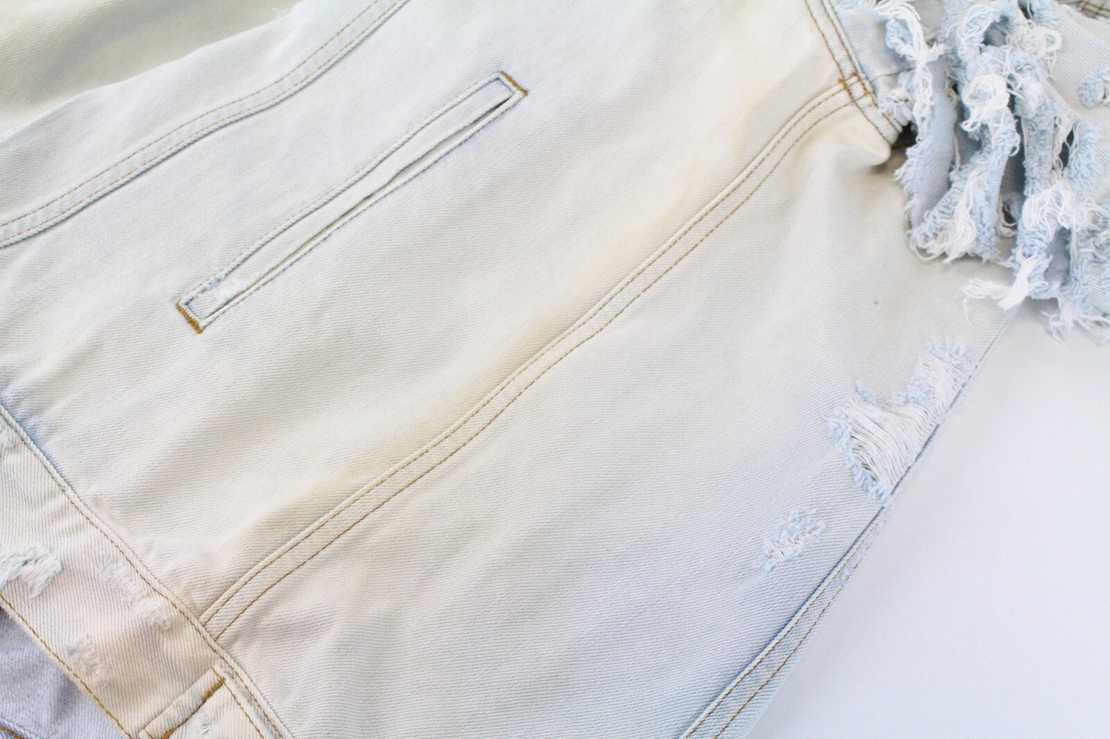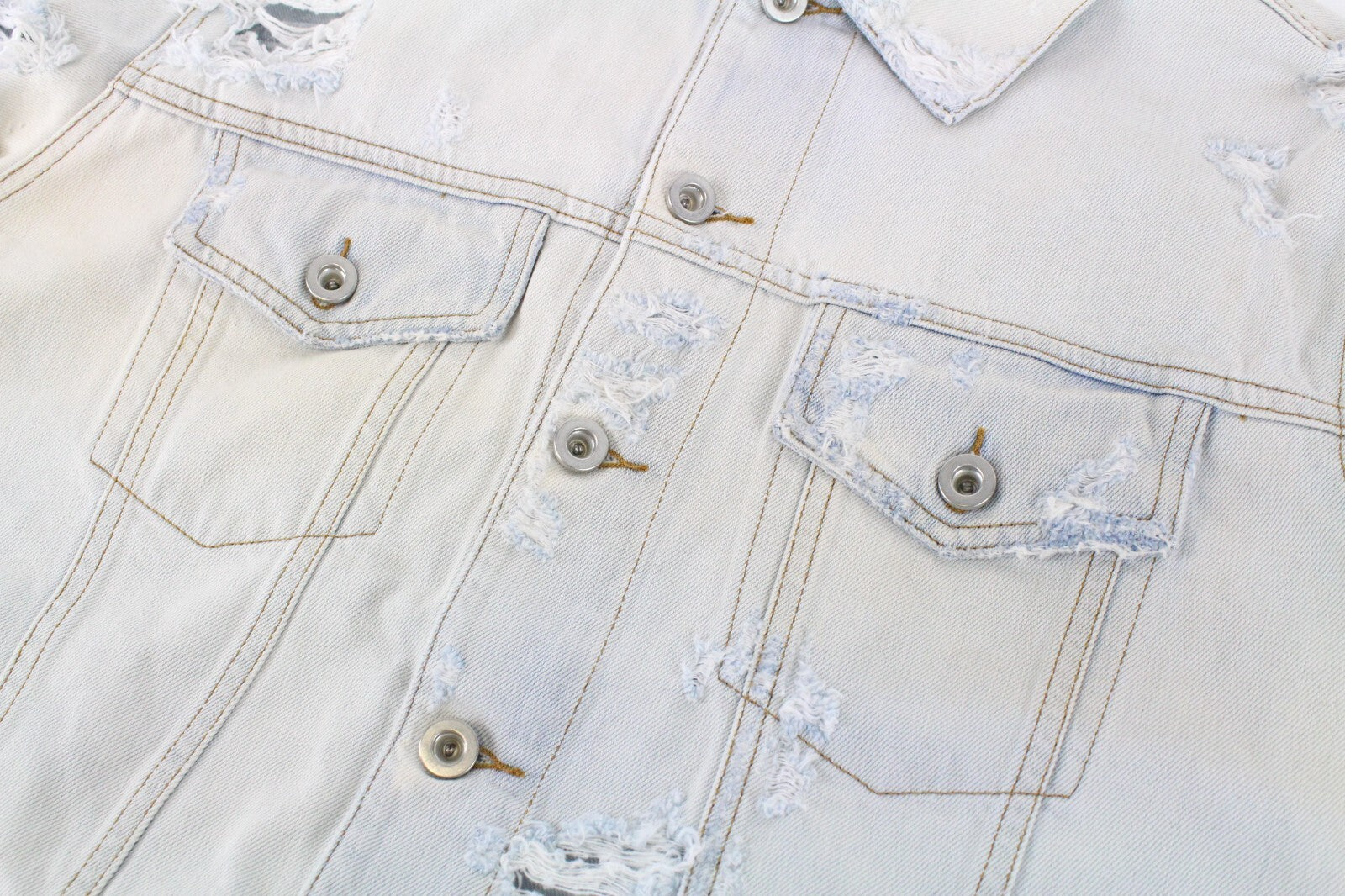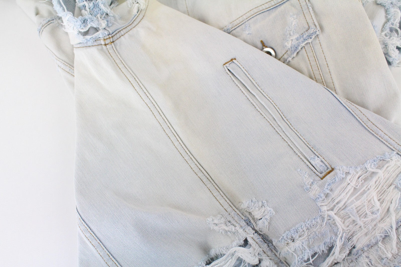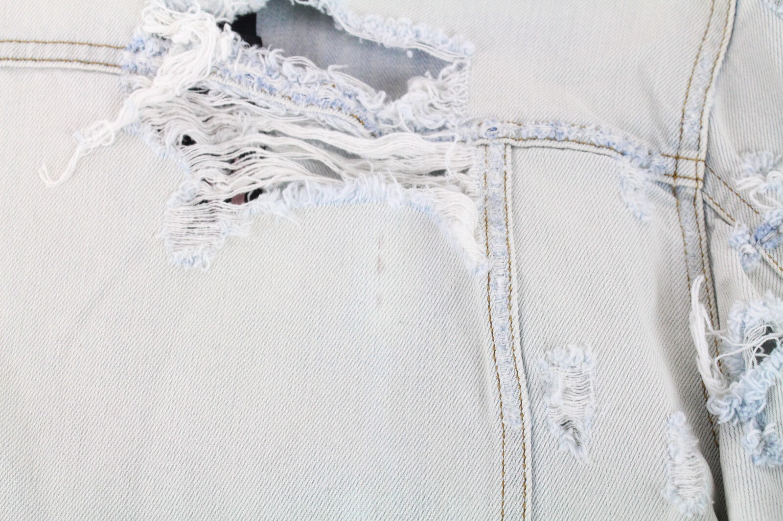 DIESEL De-Visty 069AV Jacket Women L Blue Grey Denim Ripped Cotton