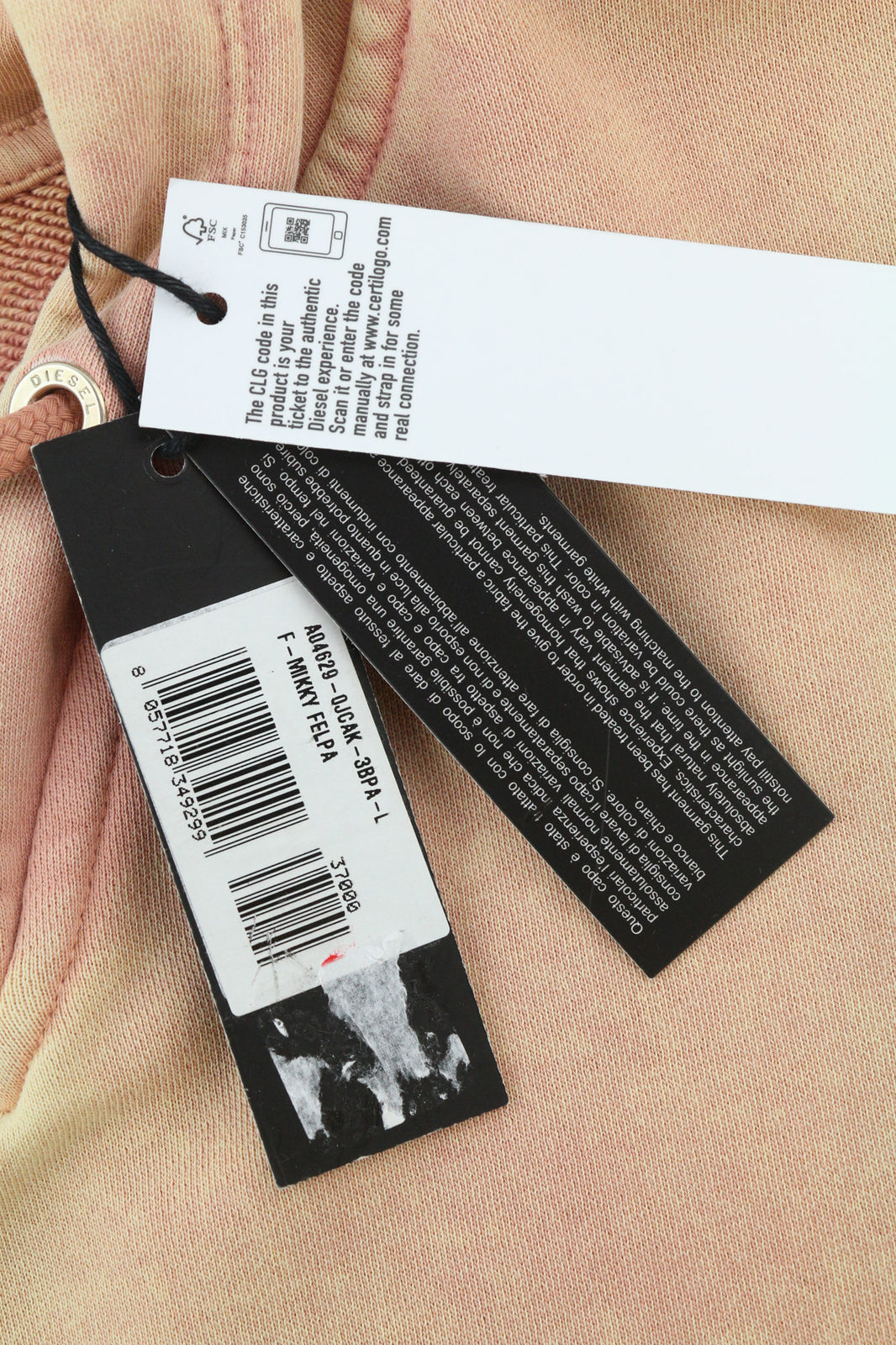 DIESEL F-Mikky Women Hoodie L Logo Peach Hooded Asymmetrical Pullover RRP€195
