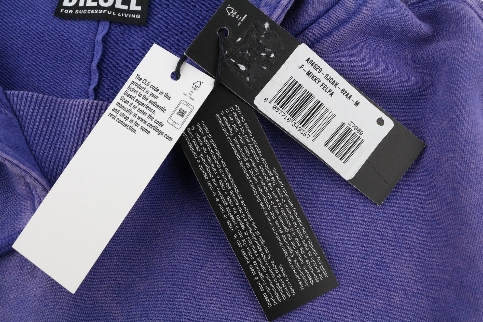 DIESEL F-Mikky Women Hoodie M Blue Washed Hooded Asym Pocket Strap RRP195