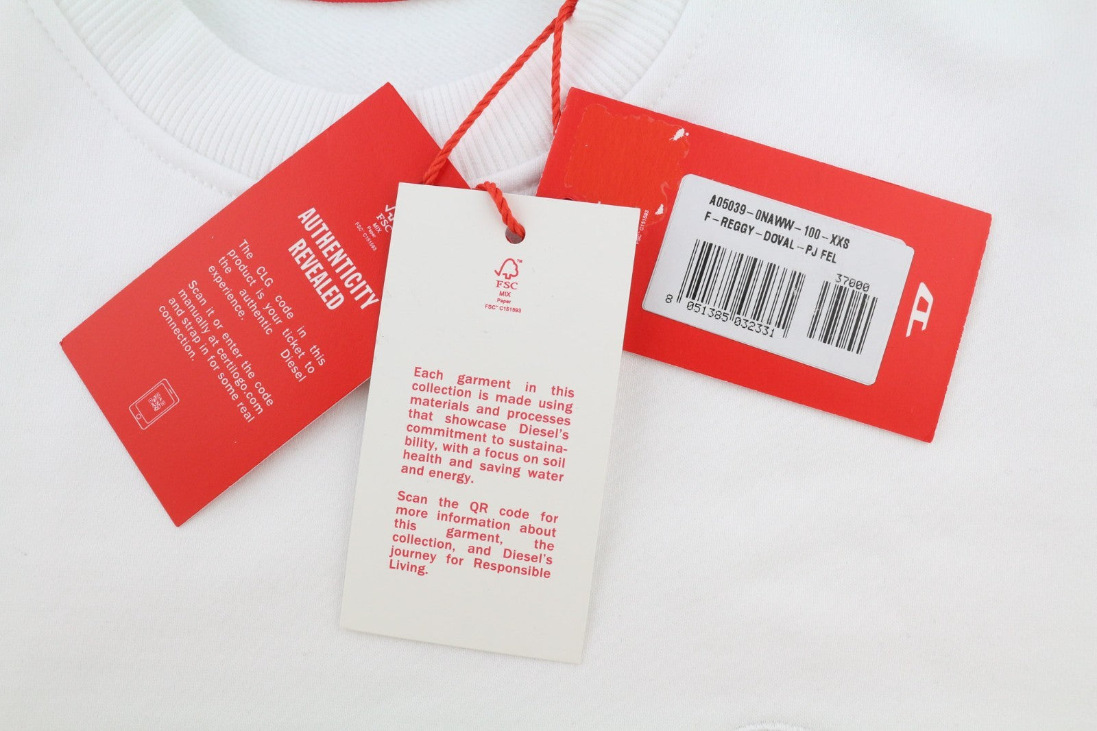 DIESEL F-Reggy-Doval Women's Sweatshirt 2XS White Crew Cotton Logo Pull On