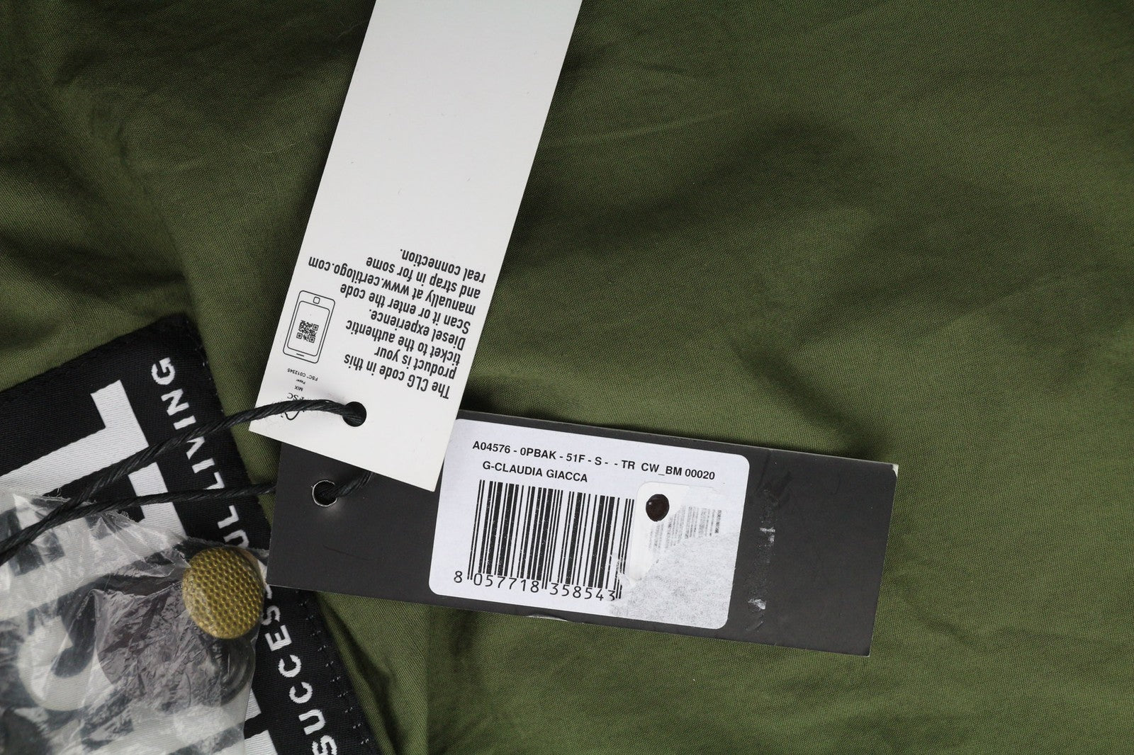 DIESEL G-Claudia Womens Jacket S Khaki Green Linen Blend Drawstring Waist