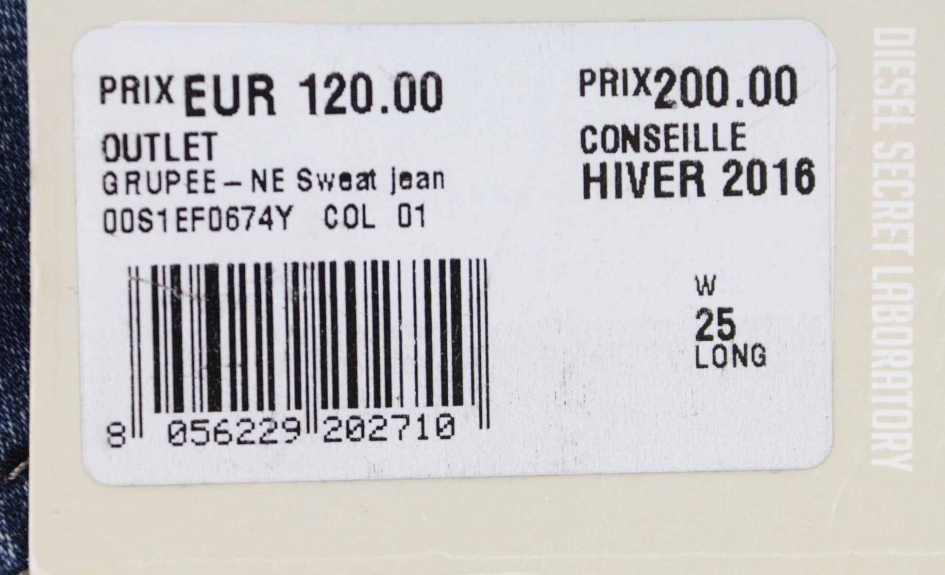 DIESEL Grupee-Ne 0674Y Women's W25 Blue Cotton Slim Wash Stretch Jogg Denim