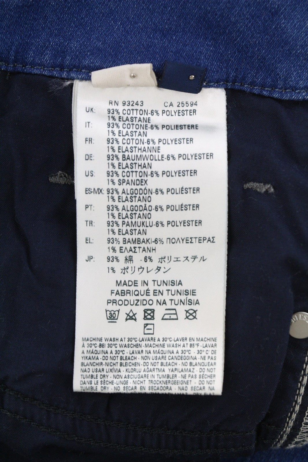 Material : 93% Cotton, 6% Polyester, 1% Elastane