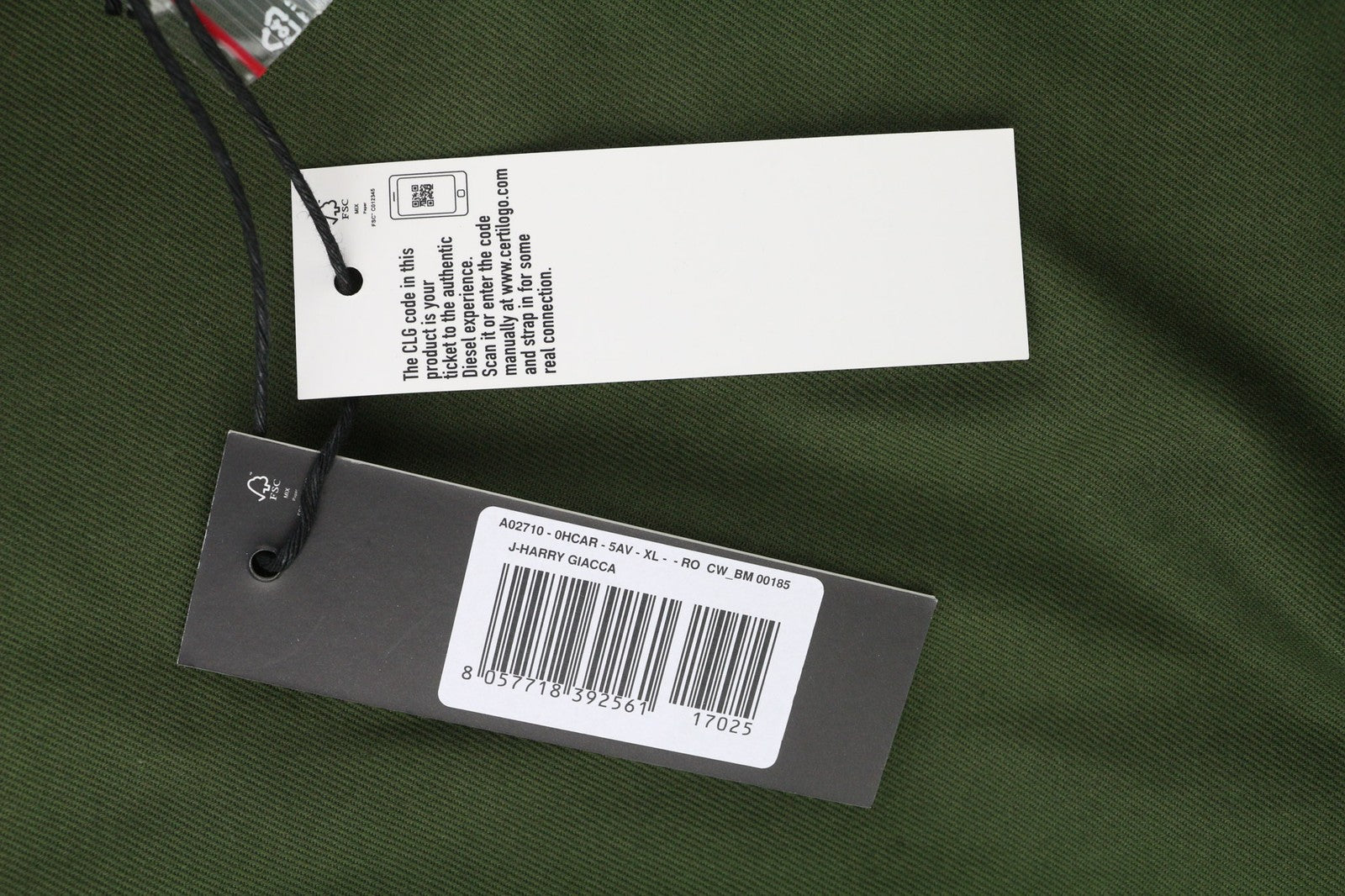 DIESEL J-Harry Mens Jacket XL Green Band Neck Pockets Plaid Lined RRP€350