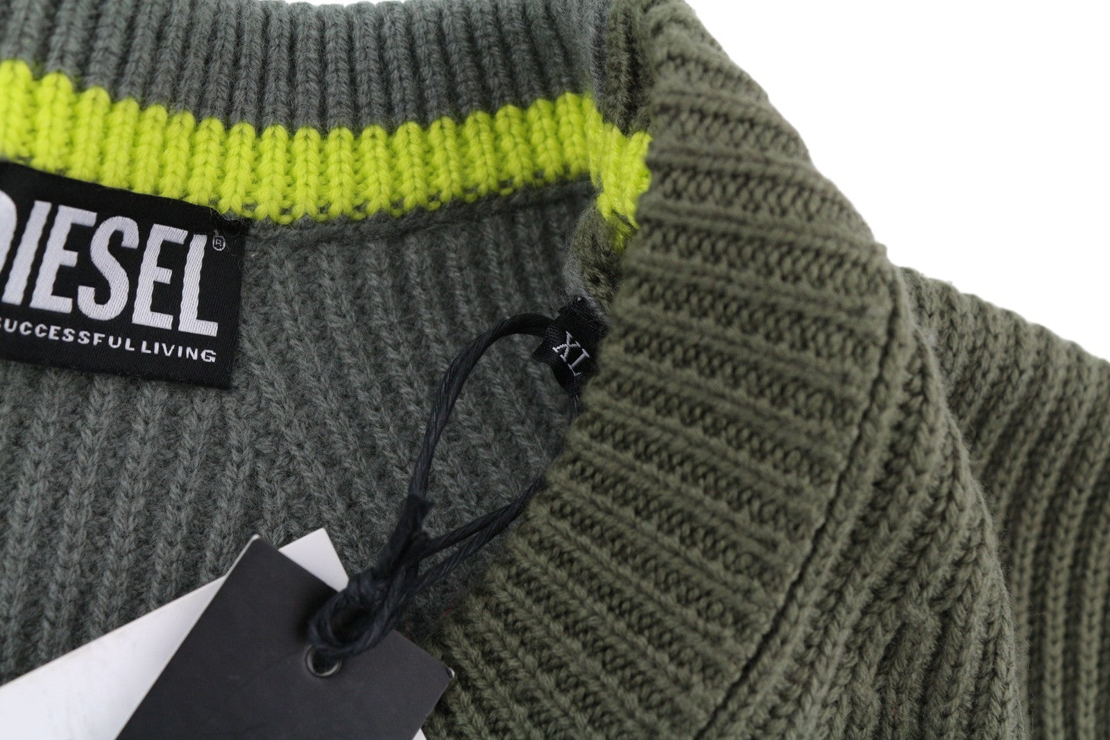 DIESEL K-Birmin Mens Jumper XL Khaki Pullover Crew Neck Knitted Wool Stretch