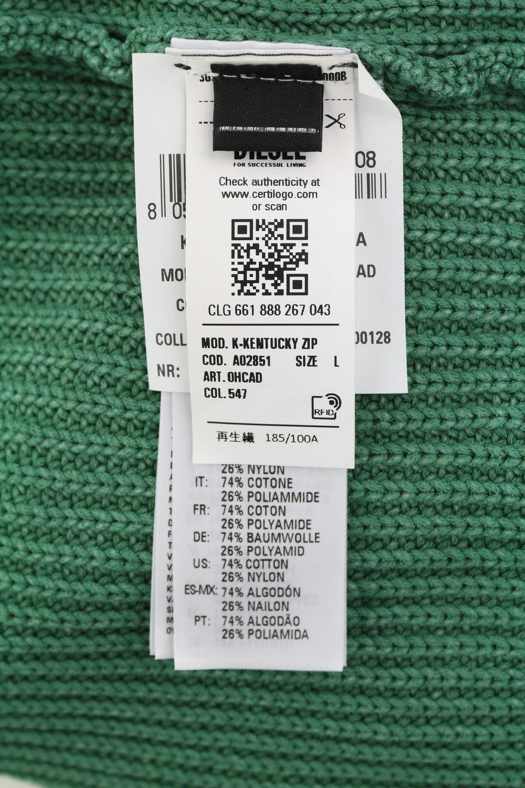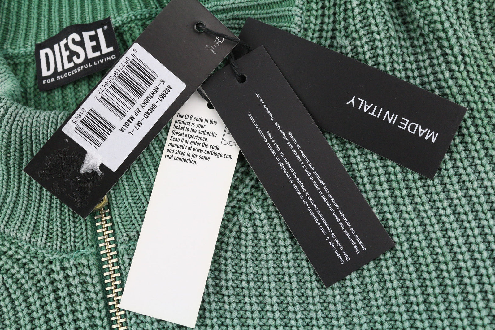 DIESEL K-Kentucky Zip Men Jumper L Washed Effect Crew Neck Knitted Green RRP€250