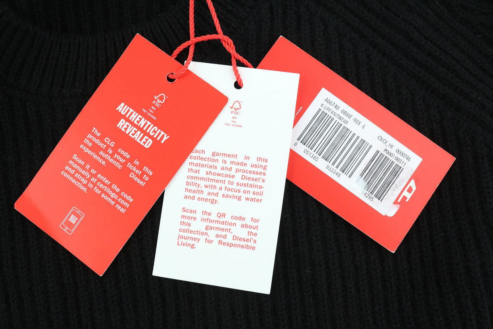 DIESEL K-Liff Men Jumper L Black Pullover Wool Knitted Crew Neck RRP€275