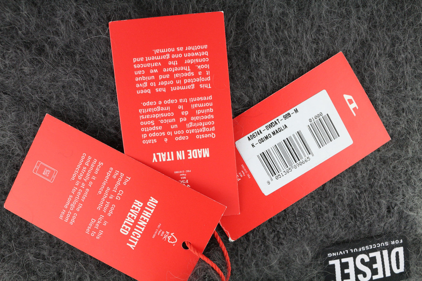 DIESEL K-Osimo Men Jumper M Pullover Mohair Wool Blend Knitted RRP€350 Grey