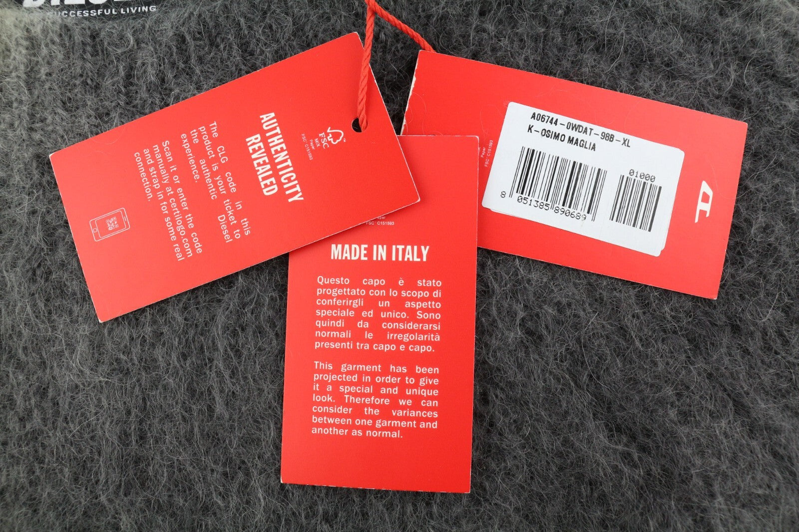 DIESEL K-Osimo Men Jumper XL Pullover Mohair Wool Blend Knitted RRP€350 Grey