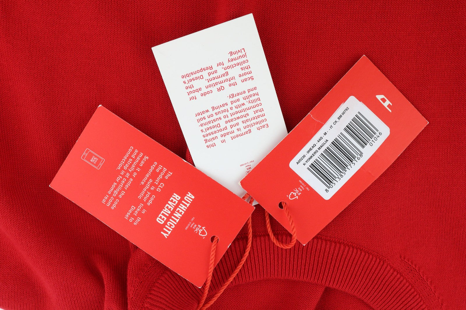 DIESEL K-Yonkers Mens Jumper M Red Pullover Crew Neck Tight-Knit RRP€175