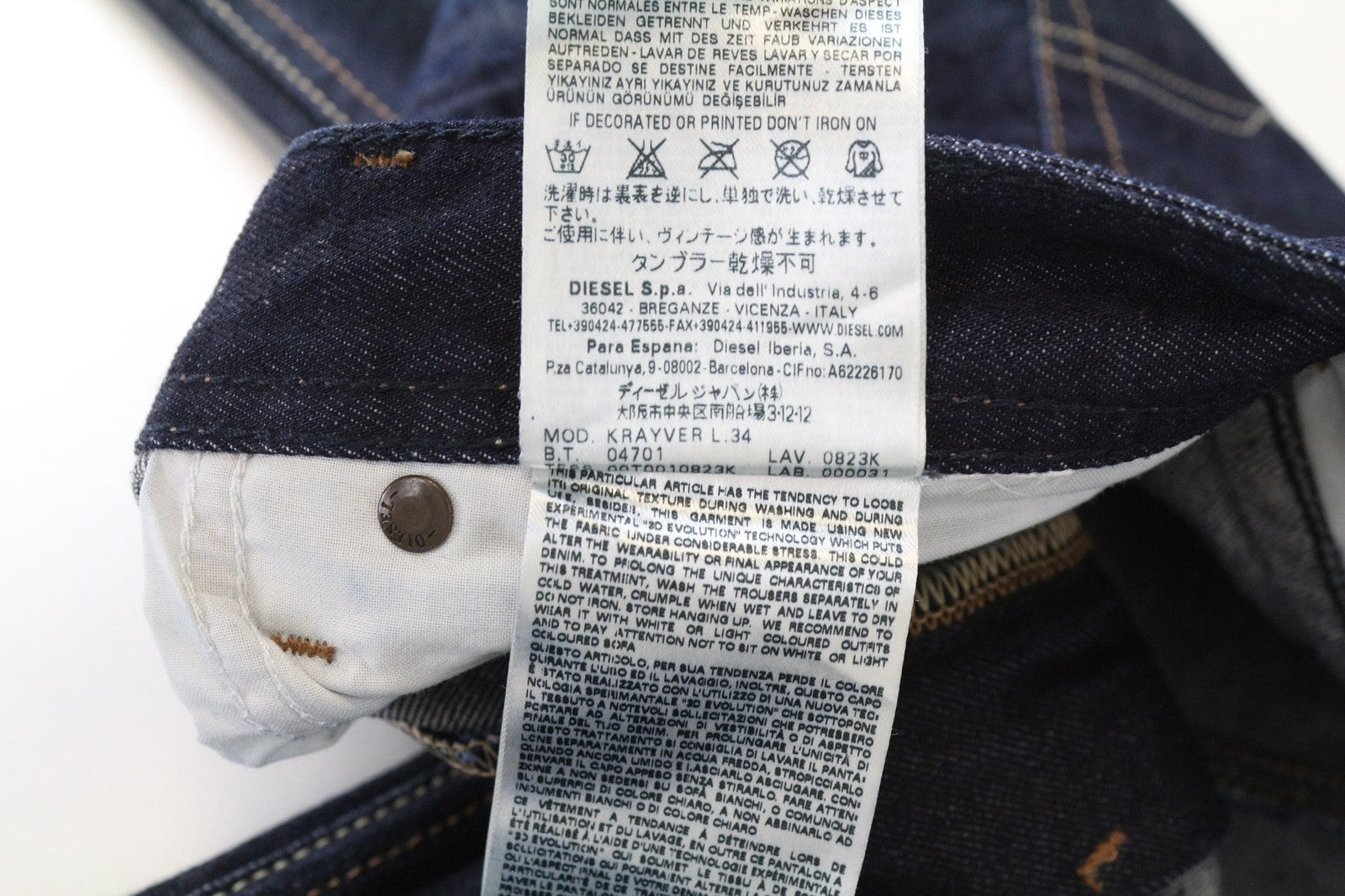 DIESEL Krayver 0823K Men's Slim Carrot Jeans W28/L34 Blue Pure Cotton Denim