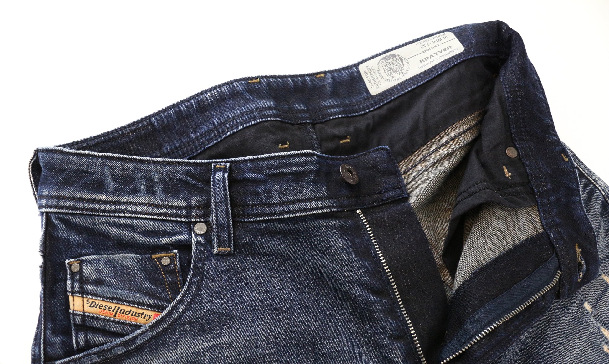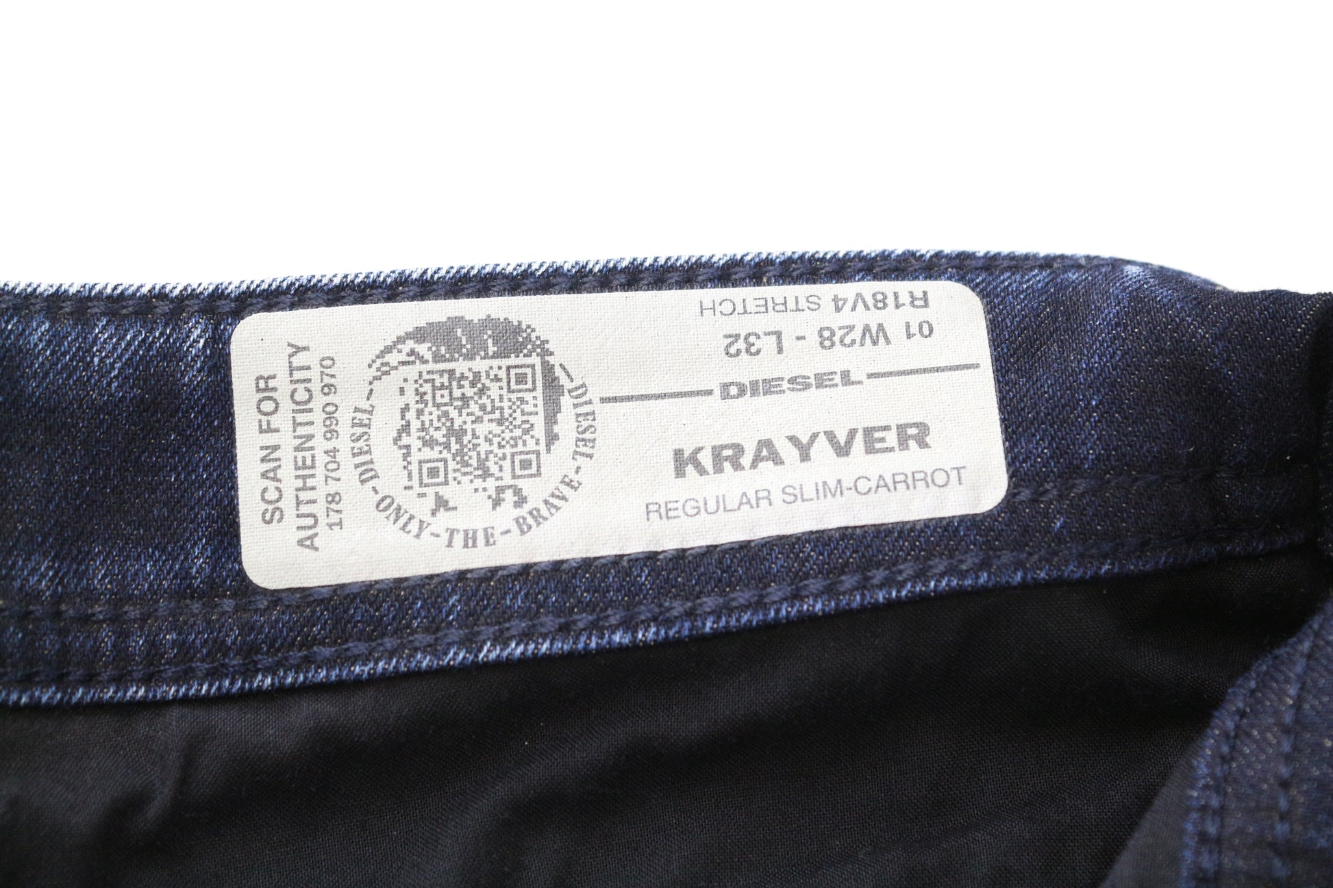 DIESEL Krayver R18V4 Ripped Slim Carrot Fit Men's Jeans W28 L32 Cotton Blue