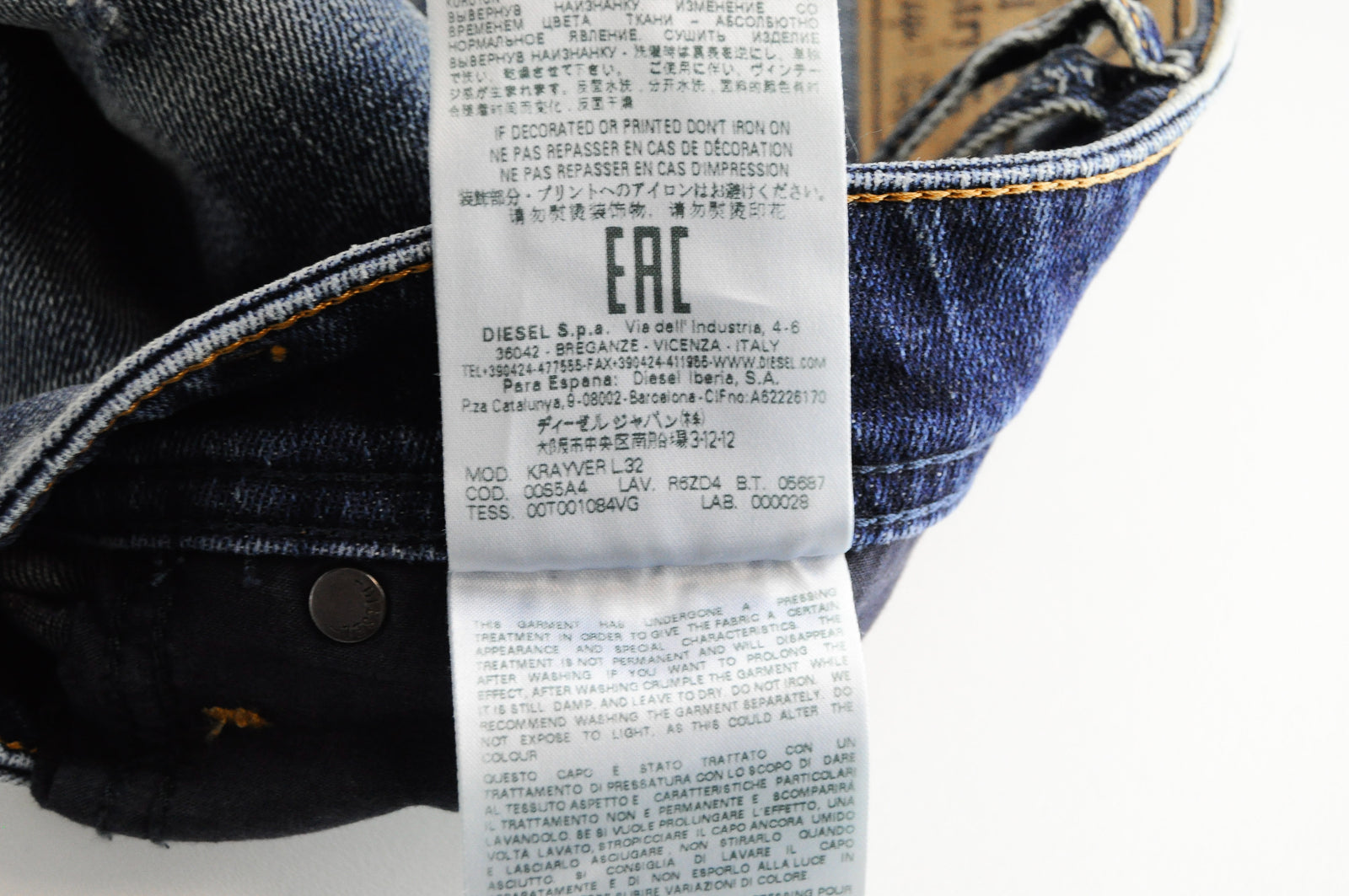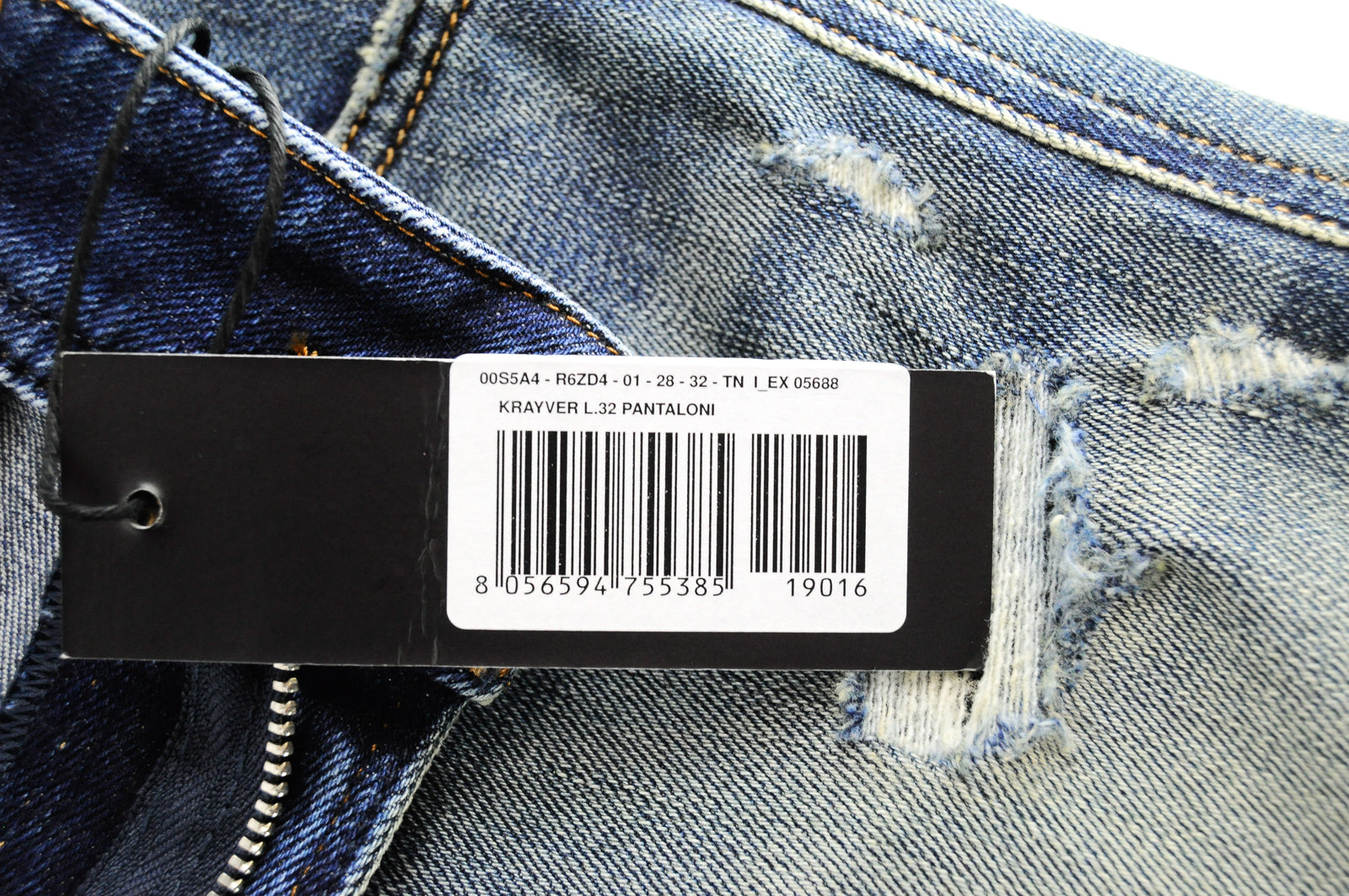 DIESEL Krayver R6ZD4 Men's Blue Slim Carrot Distressed Stretch Jeans W28/L32