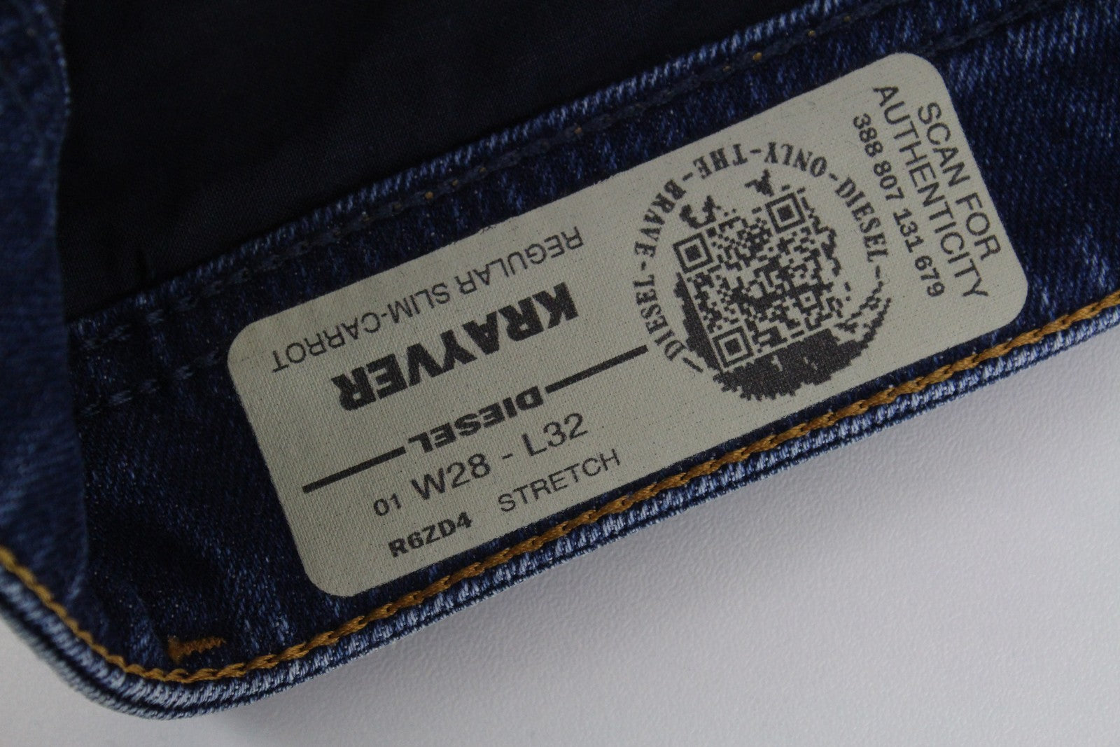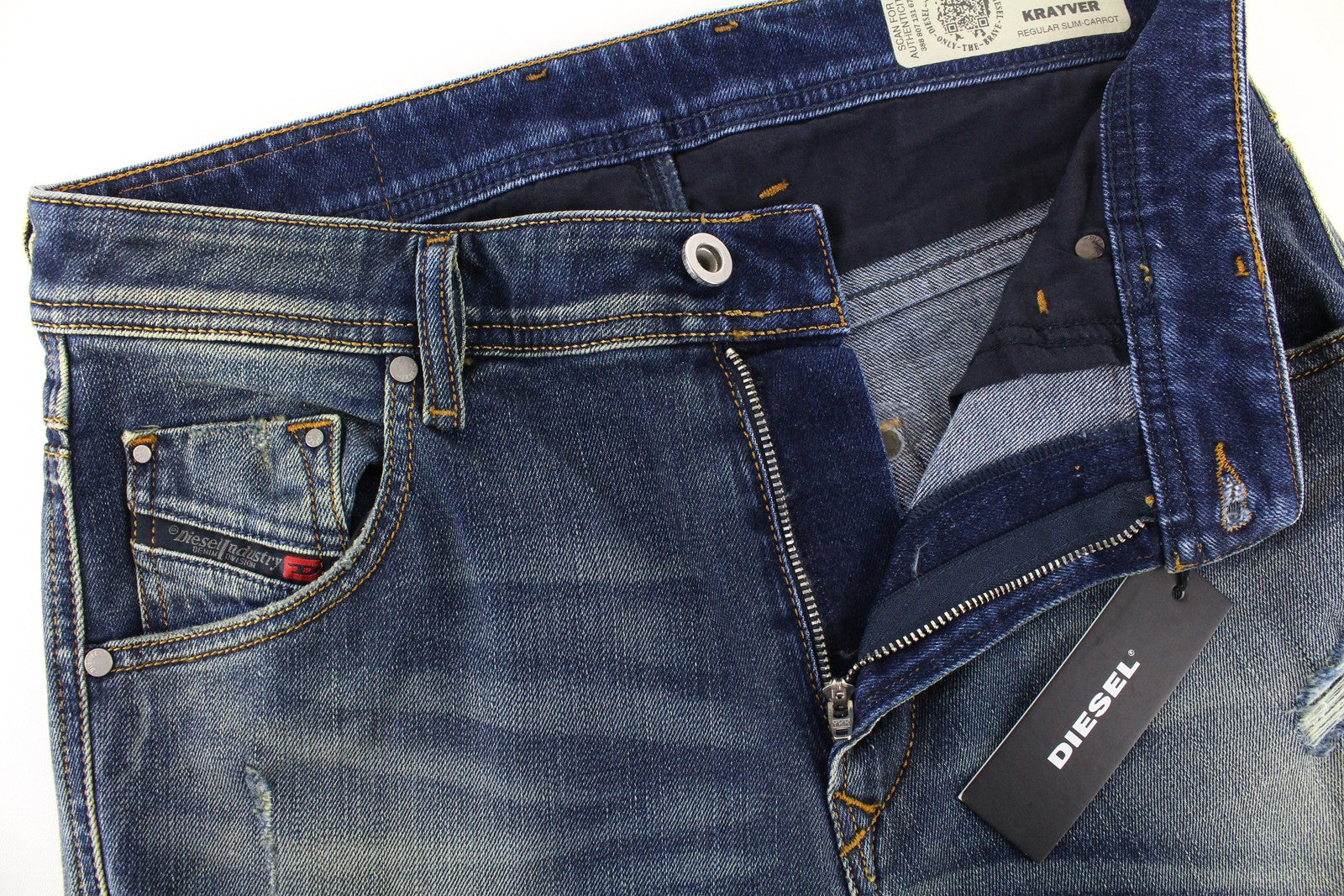 DIESEL Krayver R6ZD4 Mens Jeans W28/L32 Blue Slim Carrot Ripped Cotton