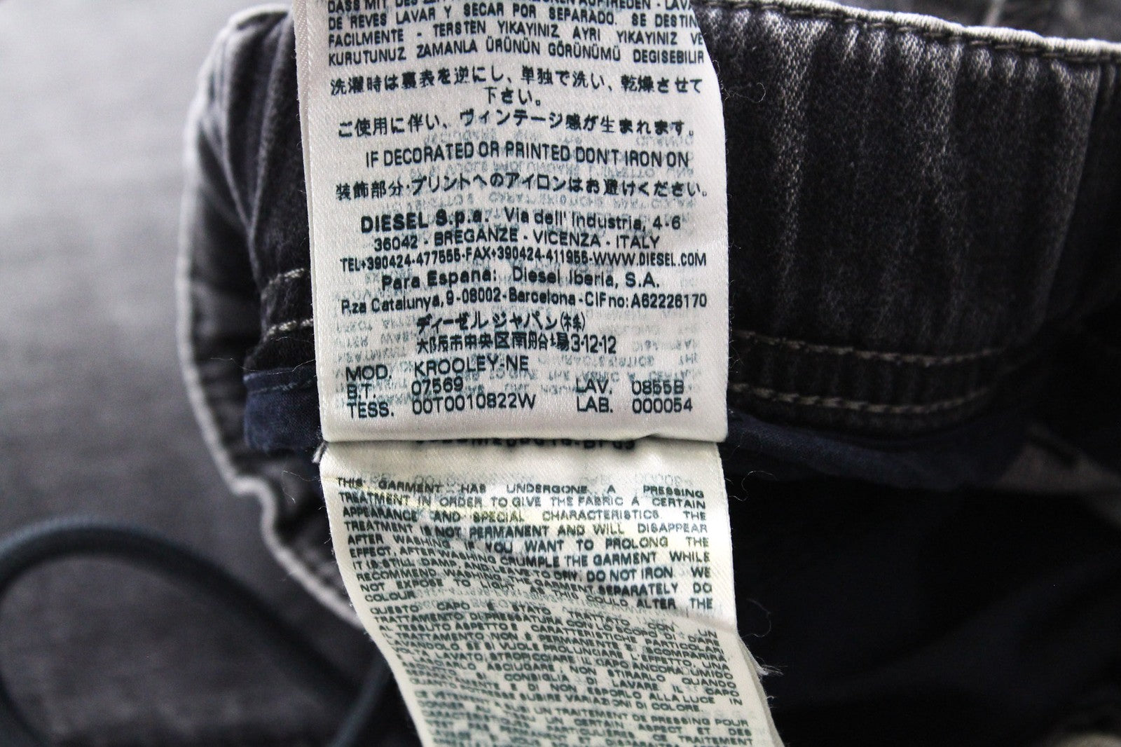 DIESEL Krooley-NE 0855B Men's Grey Slim Jogg Sweat Jeans W38 Carrot Stretch Fit