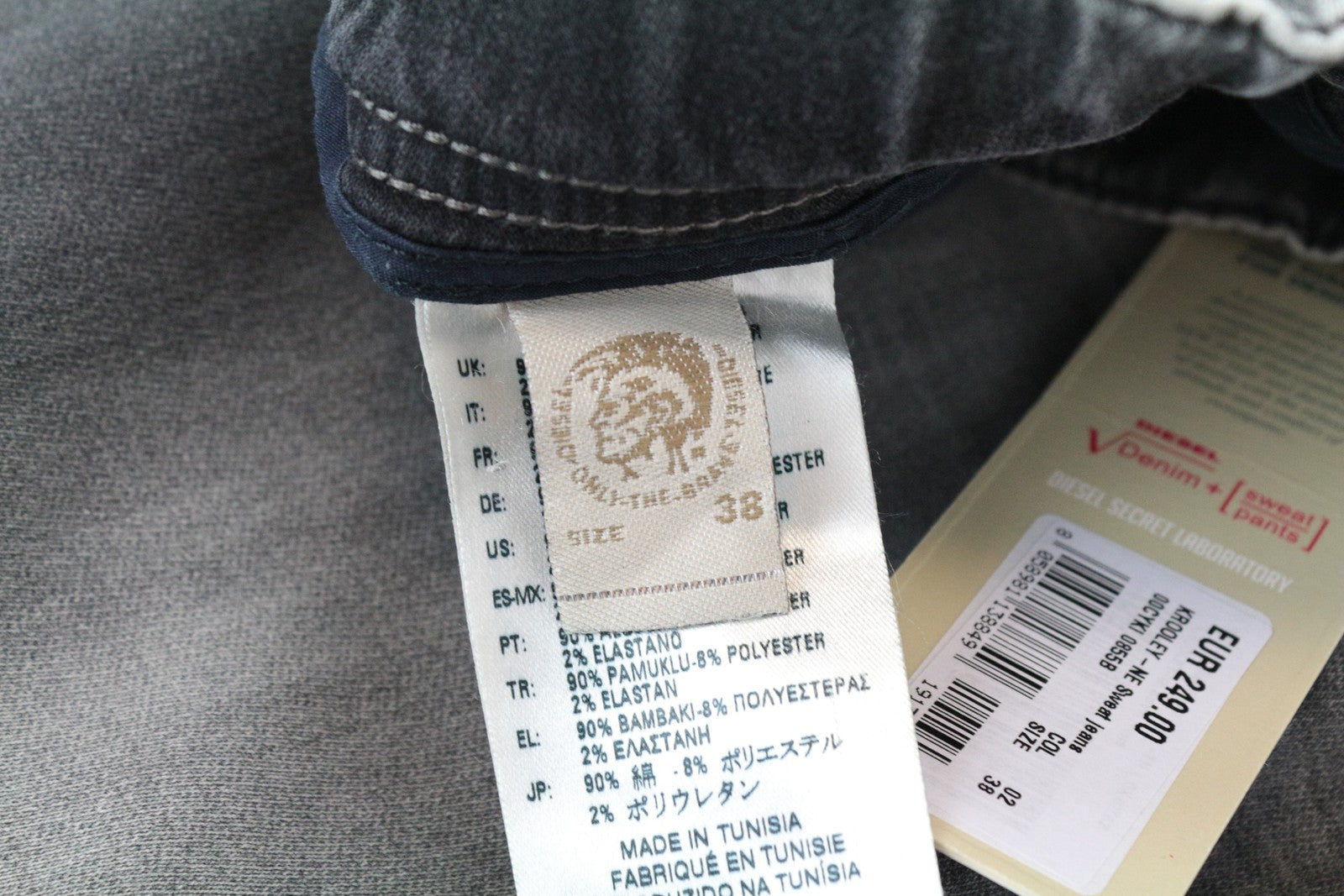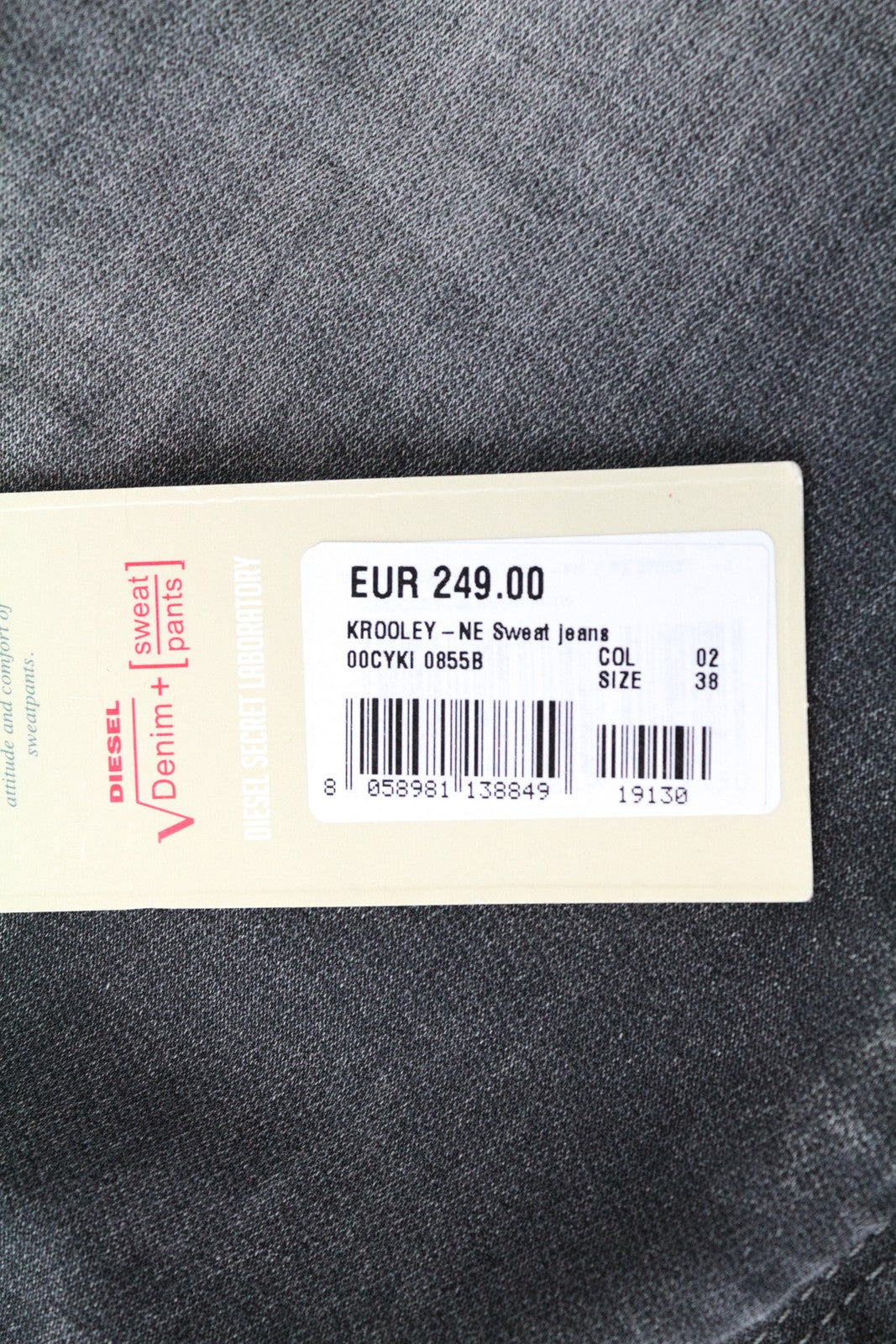 DIESEL Krooley-NE 0855B Men's Jogg Denim W38 Grey Carrot Fit Sweat Melange
