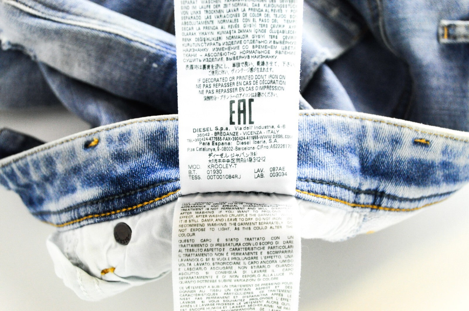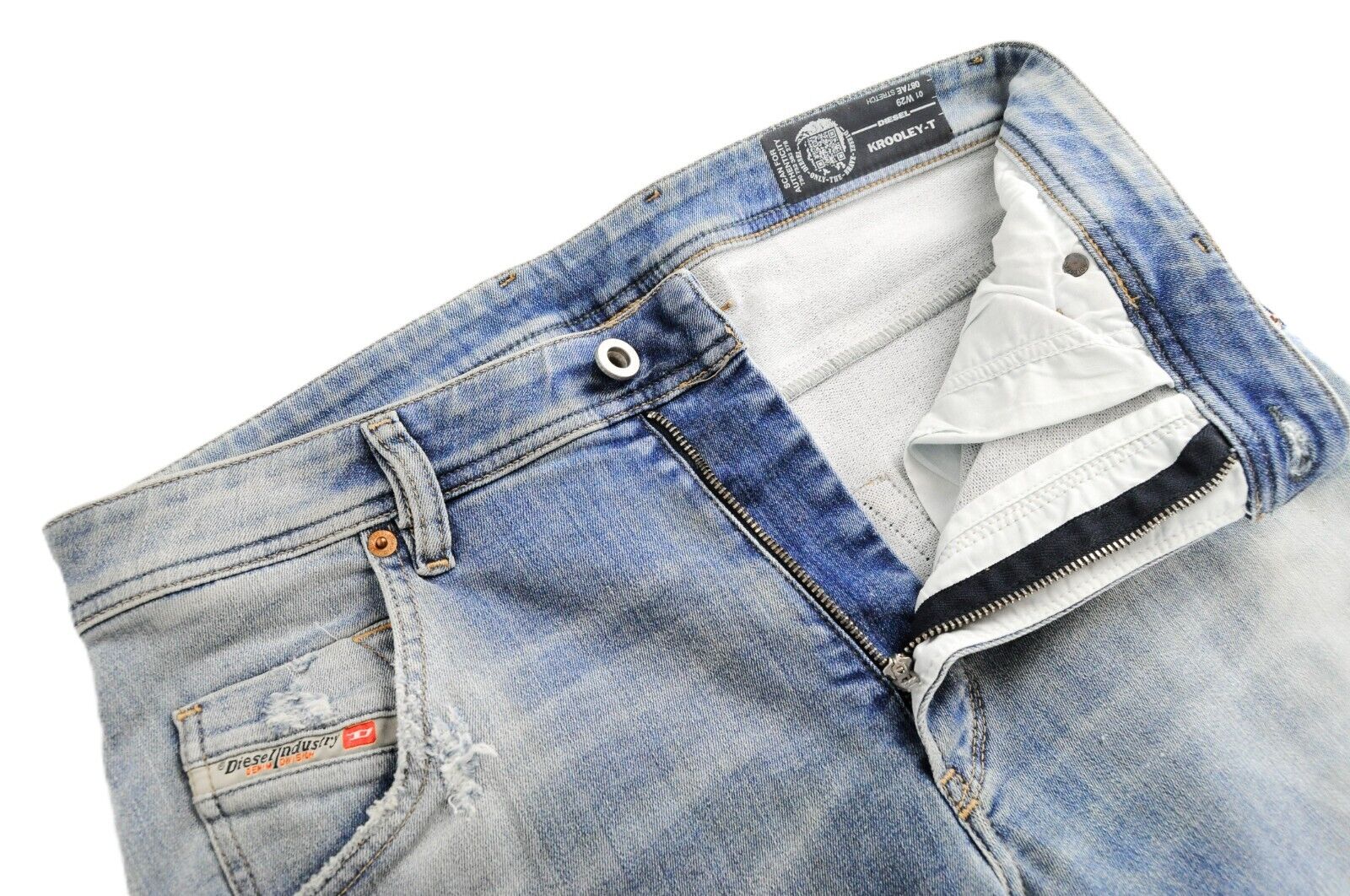 DIESEL Krooley-T 087AE Men's Jeans W29 Sweat Jogg Blue Slim Washed Stretch Rip