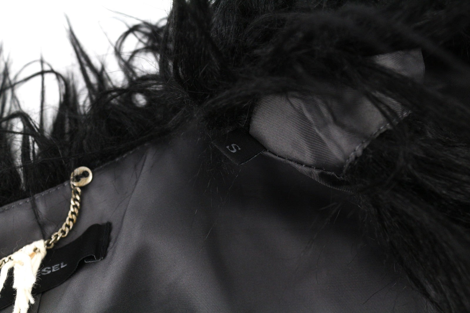 DIESEL L-Angus-A Women Waistcoat S Faux Fur Fluffy Striped Print Black & White