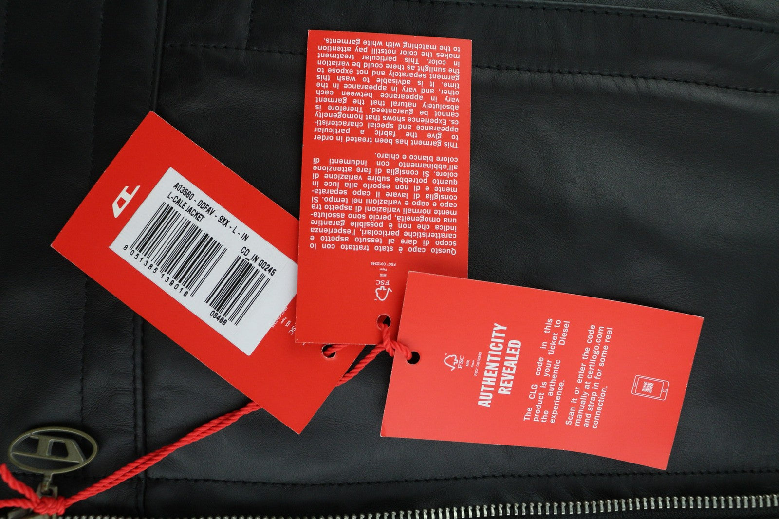 DIESEL L-Cale Mens Jacket L Black Cowhide Leather Neck Lined RRP€650