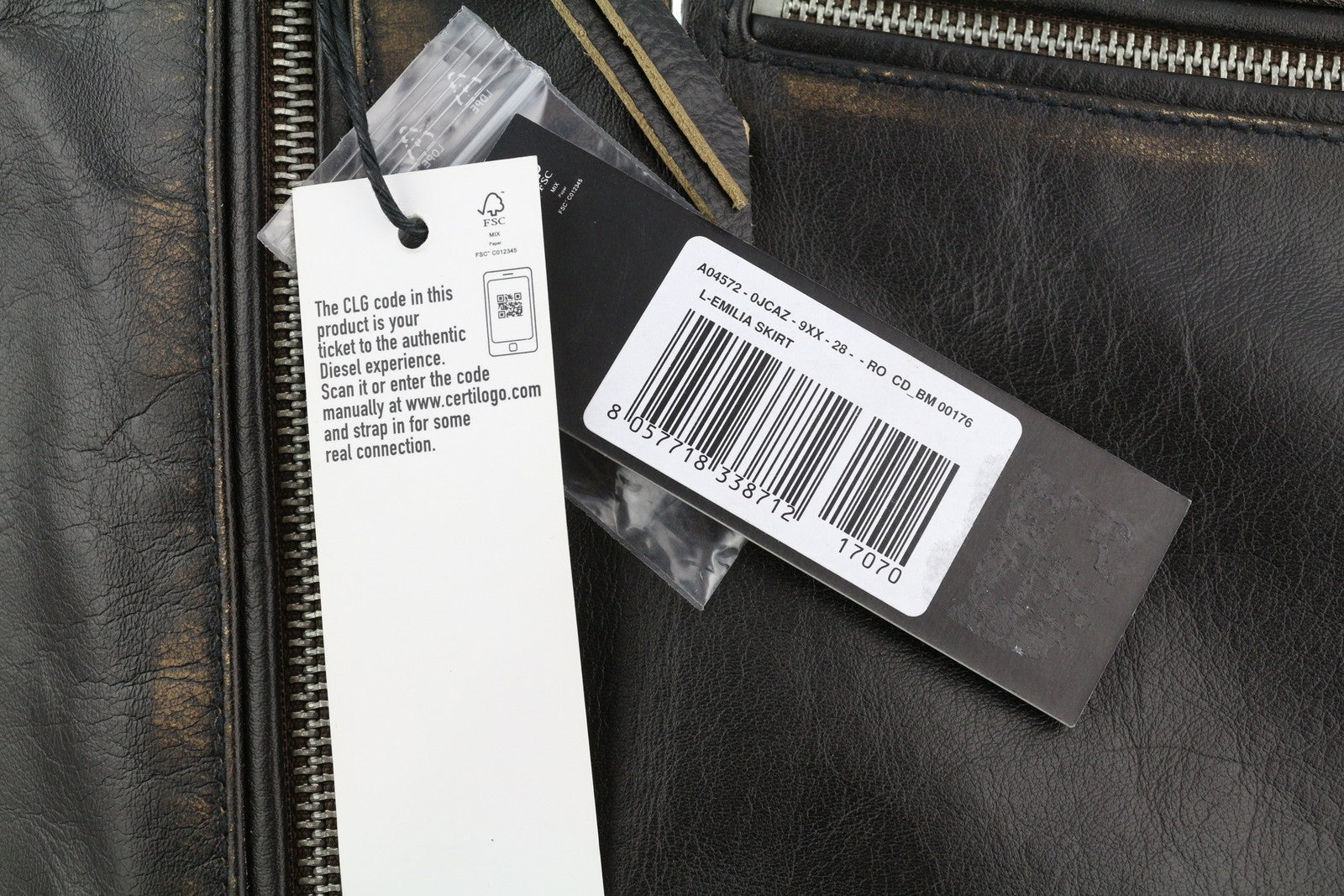 DIESEL L-Emilia Women Skirt W28 Black Cowhide Leather Aged Look Zip Fly RRP€395